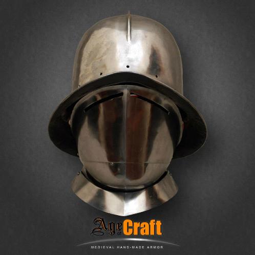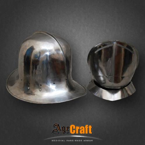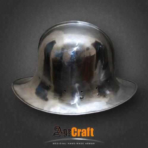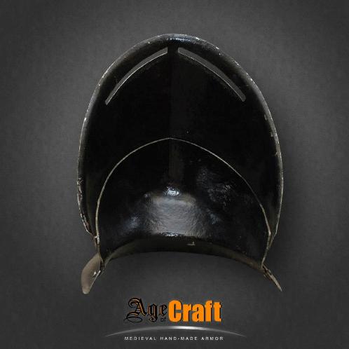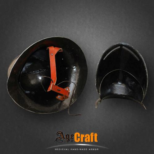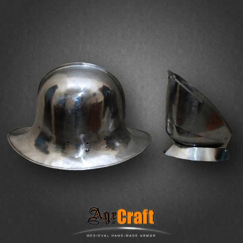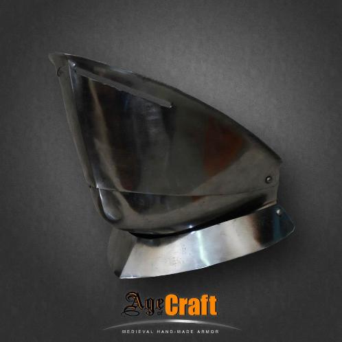 Шапель (shapelle) в переводе с французского означает шляпа. Польное название такого шлема железная шляпа (shapelle de fer). Появились такие шлема в начале 13 века использовались до конца 17 века. Почти до не узнаваемости изменясь внешне и зная множество видов и названий. Данный шлем снабжен дополнительной защитой лица, представляющей собой широкую, специально откованую под форму шеи и подбородка пластину - бивор. В такой комбинации Шапель и бивор способны дать превосходнейшую защиту для самых жестких битв.