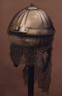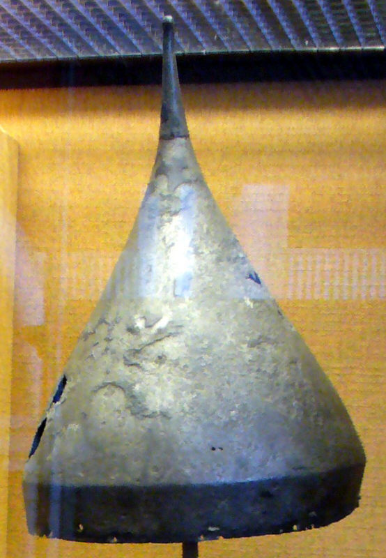 | Шапка мисюрка. | Шапка мисюрка. Национальный архитектурно-исторический заповедник "Древний Чернигов” | Высокий шлем с выставки кладов в подклете Благовещенского собора Московского кремля. Клад предметов вооружения рубежа 14-15 вв. Найден в 1975 году при расчистке колодца в Угловой Арсенальной башне Московского Кремля. |