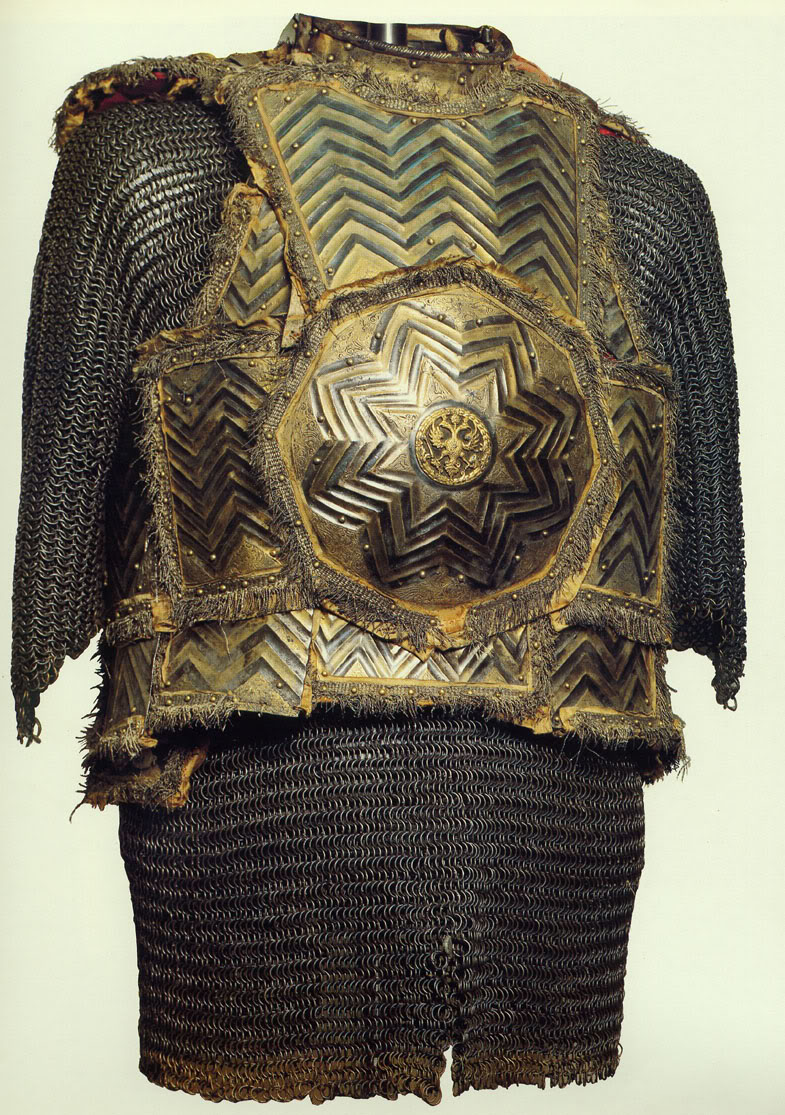 В этой подборке фотографий из музеев России и Украины я пытался собрать русские доспехи которые применялись русскими если не в бою, то хотя бы на парадах. На первый взгляд может показаться что собственного стиля доспеха в России не было, он представляет собой доспех турецкого стиля и примесью кавказского и индо персидского. Но тем не менее свои особенности есть. В Московской России и на территории Украины и Белоруссии никогда не применялись тюрбанные шлемы. Корпусной бехтерцевый доспех застегивался всегда по бокам. Круговой зерцальный доспех в Московии делался с гофрированной поверхностью, и был настолько популярен, что в англоязычном оружиеведении употребляется термин "krug armour" даже для зерцальных доспехов привезенных из Турции или Египта.