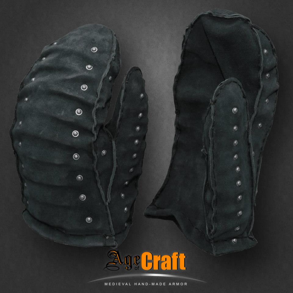 Данные латные перчатки пресдставляют собой компромис между ценой и высокими защитными свойстварми. Цельная крага данной перчатки закрвает костяшки и половину пальцев, таким образом дает очень жесткую защиту кисти руки, но несколько снижает подвижность. Данный вариант латной перчатки идеально подходит для алебардистов, чьи кисти рук наиболее уязвимы, и высокая подвижность кисти рук не требуется.