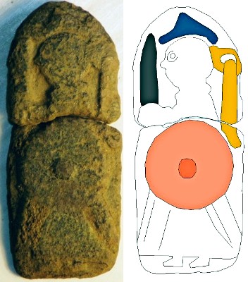 | Пластинка с изображением вооруженной женщины. Гаммель Хвидинг, Ютландия. Находка Йенс Лей младший. Фото Хенрик Бринч Кристиансен. Рисунок Клаус Февель. |