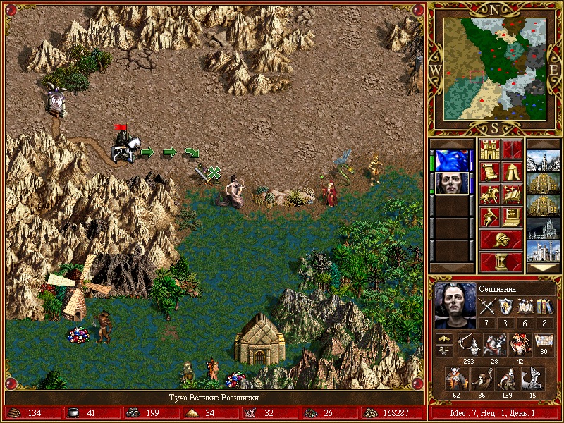 Ну и казалось бы в чем романтика: "успею ли я построить здание 7-уровня в первую неделю, а капитолий до конца второй. Идти атаковать циклопов или армия дороже; у врага численное преимущество: ну чтож.. зато я эксперт Магии Воздуха – где моя "цепь молний"; Утопия Драконов – надо брать, хоть и войска мало, но не возьму я – возьмет противник, заберет деньги и могучие артефакты и тогда пиши пропало. Над такими проблемами вам и придется сушить голову во время этой игры и даже получать адреналин когда на вас нападет герой у которого 50 черных драконов и начнет творить армагеддон. Тактика как и описание юнитов каждого города заслуживает отдельных публикаций.