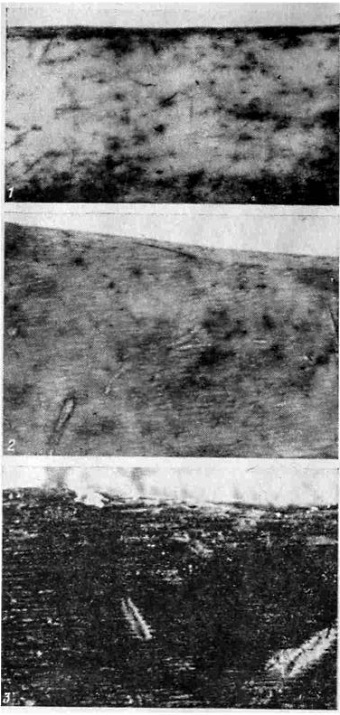 Рпс. 2. 1-3 – микрофотографии рабочих поверхностей лощил.