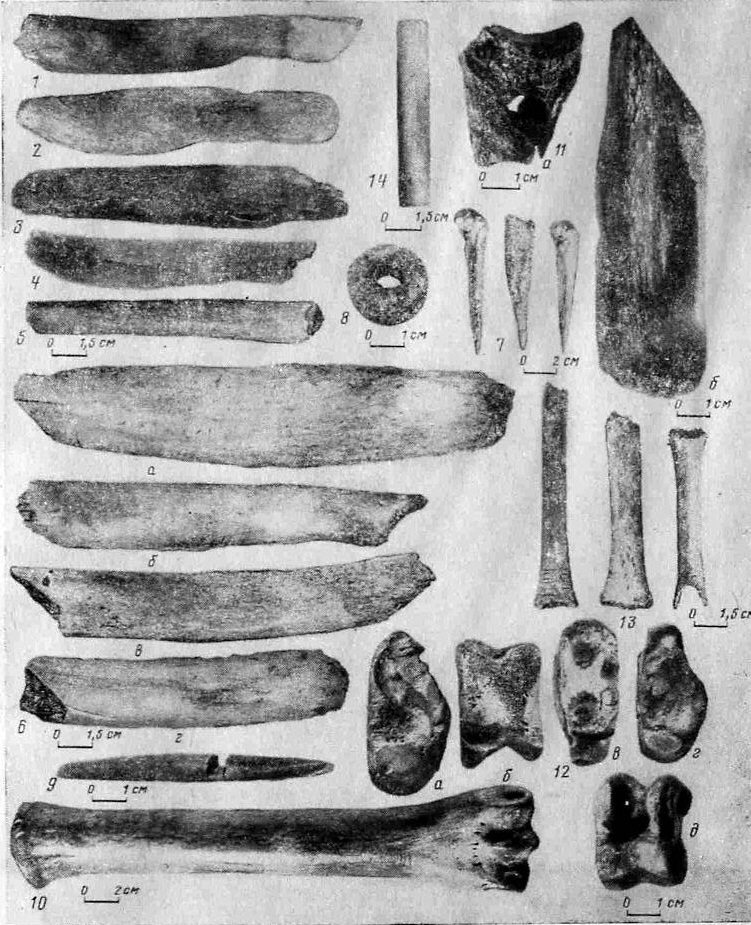 На трех селищах найдено более 300 костяных предметов. Абсолютное большинство поделок обнаружено в жилищах или ремесленно-хозяйственных постройках.
