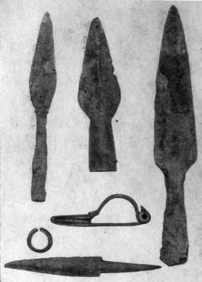 Наконечники копий, фибула, нож  Умбон и фрагмент рукоятки щита из Братово
