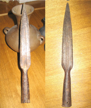 Сабли, клинки анузгинской работы. Ножны кубачинской работы. Начало XX века.  Копье, найденное в Грузии