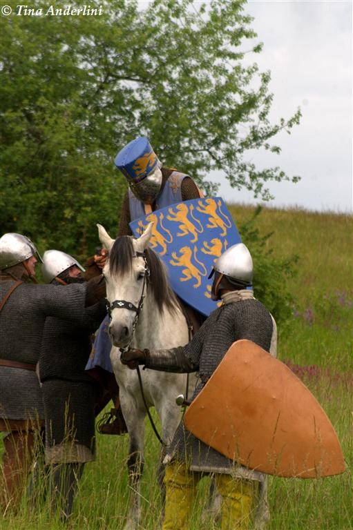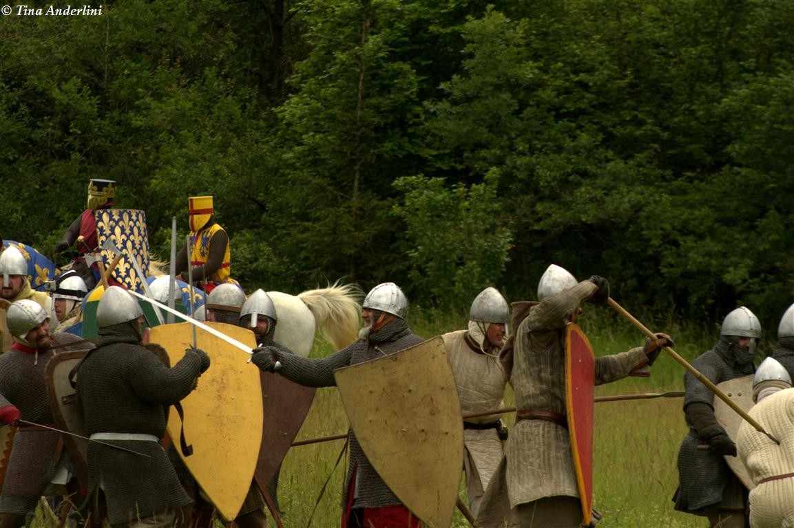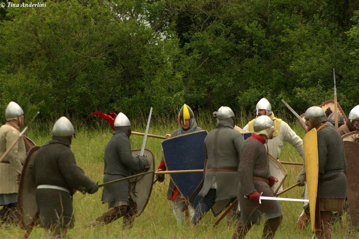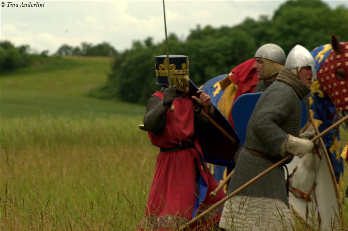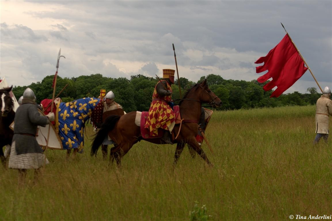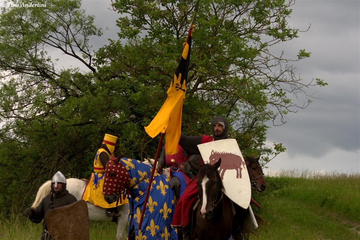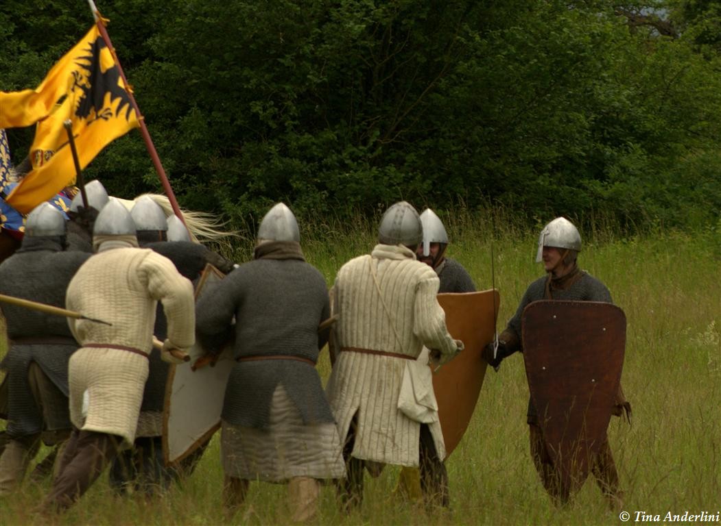 Фестиваль Битва при БувинеБитва при Бувине – сражение 27 июля 1214 года между войсками французского короля Филиппа II Августа и англо-фламандско-немецкой коалиции, возглавляемой императором Священной Римской империи Оттоном IV. Завершилась победой французов и усилением королевской Франции. Конница противников была построена отдельными колоннами. Пехота (лучники, копейщики) располагались впереди рыцарей. В задачу пехоты входило служить живым бруствером для рыцарской конницы. Так, один из отрядов армии Оттона выделил несколько сот пехотинцев, создавших своего рода круг. В ходе сражения рыцари по мере необходимости скрывались в этом «убежище» и приводили себя в порядок. Само сражение протекало в форме отдельных схваток отрядов и групп рыцарей. Никакого общего руководства не было; император и король сражались как рядовые рыцари. Битва закончилась победой французов. В бою отличился епископ-воин Филипп де Дрё. Он пользовался палицей, отказавшись от режущего оружия, как кровоточительного, – согласно каноническим законам, запрещавшим священникам проливать кровь. Цитата из описания битвы при Бувине: «Левое крыло французов долго не могло справиться с войсками Солсбери и Рено Булонского, укрывавшегося в каре своих брабансонов, но положение союзников и здесь было поколеблено атакой, которую произвел епископ Бове со своими милициями. «Страшный епископ», вооруженный палицей, лично поразил Солсбери и многих других неприятельских воинов.» Ниже на фотографиях представлена реконструкция битвы проводимая на фестивале Bouvines 1214, на том месте где 700 лет назад проходило это сражение. Это мероприятие отличает не большое количество участников, а высокий уровень достеверности в исторической реконструкции первой половины 13 века. Одежда, оружие, доспехи, снаряжение всадника и коня отличается большой аутентичностью. Бои постановочные, репетицию боев можно посмотреть на этой странице. Официальный сайт фестиваля: www.bouvines1214.org.