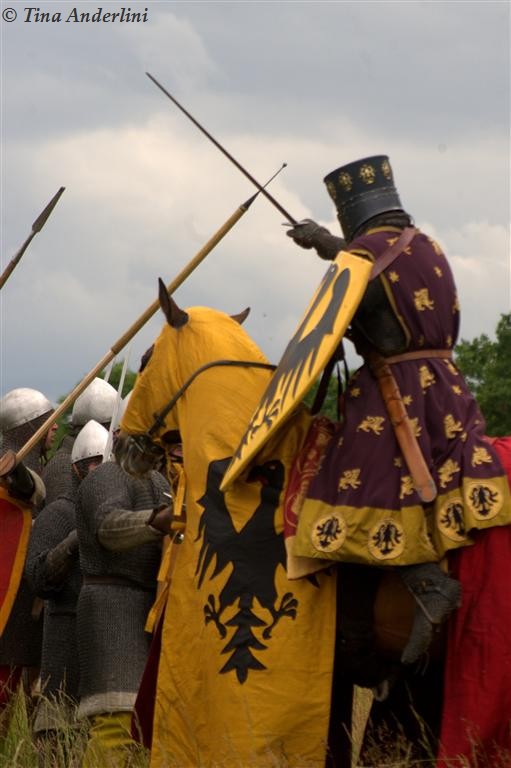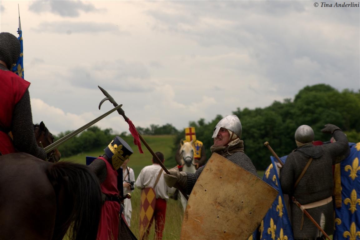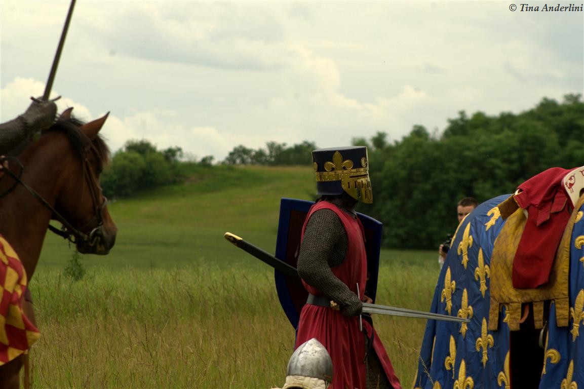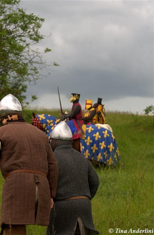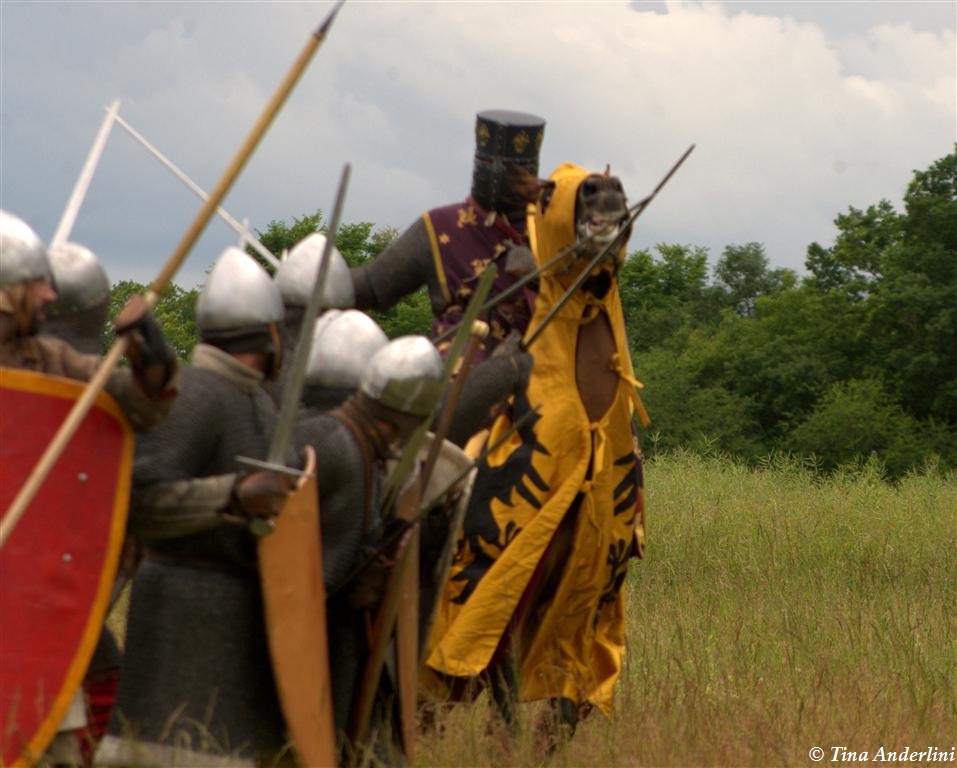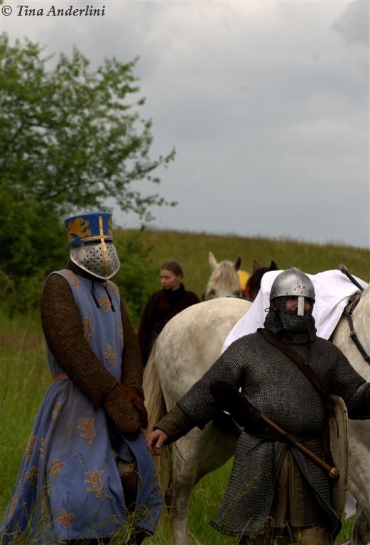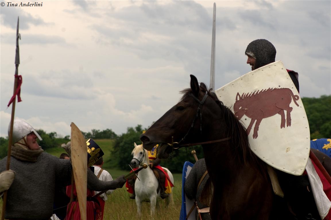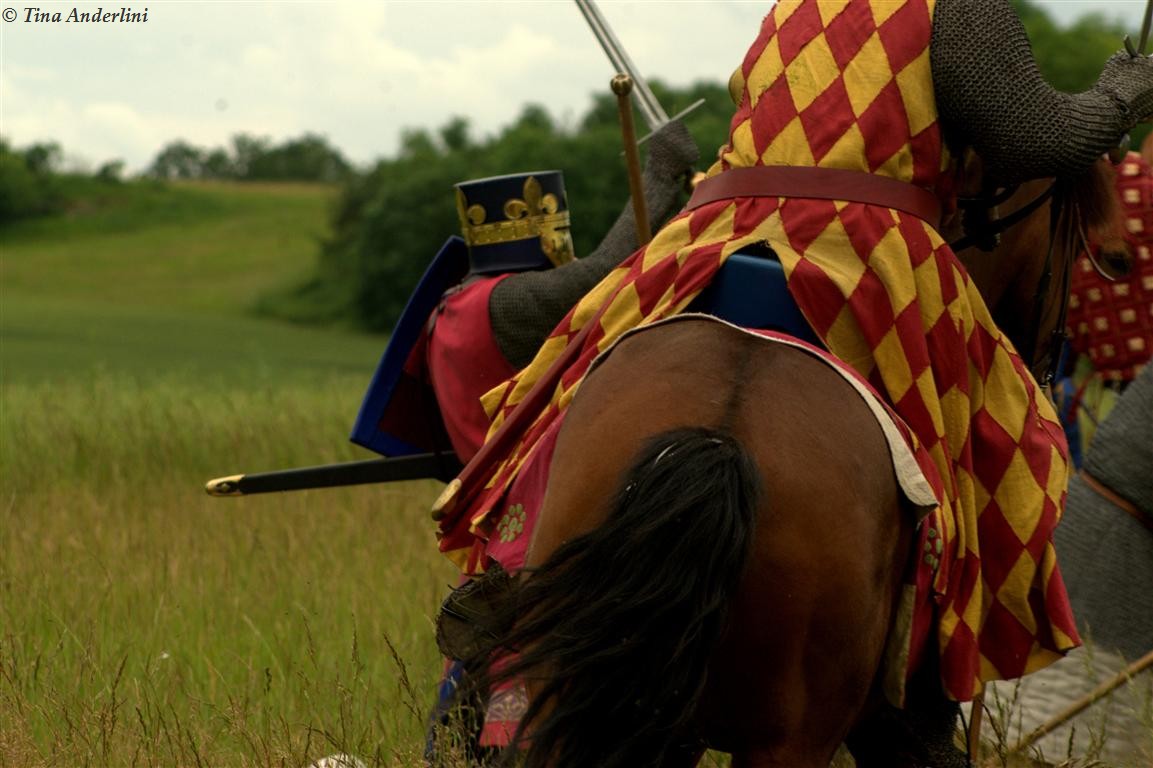 Фестиваль Битва при БувинеБитва при Бувине – сражение 27 июля 1214 года между войсками французского короля Филиппа II Августа и англо-фламандско-немецкой коалиции, возглавляемой императором Священной Римской империи Оттоном IV. Завершилась победой французов и усилением королевской Франции. Конница противников была построена отдельными колоннами. Пехота (лучники, копейщики) располагались впереди рыцарей. В задачу пехоты входило служить живым бруствером для рыцарской конницы. Так, один из отрядов армии Оттона выделил несколько сот пехотинцев, создавших своего рода круг. В ходе сражения рыцари по мере необходимости скрывались в этом «убежище» и приводили себя в порядок. Само сражение протекало в форме отдельных схваток отрядов и групп рыцарей. Никакого общего руководства не было; император и король сражались как рядовые рыцари. Битва закончилась победой французов. В бою отличился епископ-воин Филипп де Дрё. Он пользовался палицей, отказавшись от режущего оружия, как кровоточительного, – согласно каноническим законам, запрещавшим священникам проливать кровь. Цитата из описания битвы при Бувине: «Левое крыло французов долго не могло справиться с войсками Солсбери и Рено Булонского, укрывавшегося в каре своих брабансонов, но положение союзников и здесь было поколеблено атакой, которую произвел епископ Бове со своими милициями. «Страшный епископ», вооруженный палицей, лично поразил Солсбери и многих других неприятельских воинов.» Ниже на фотографиях представлена реконструкция битвы проводимая на фестивале Bouvines 1214, на том месте где 700 лет назад проходило это сражение. Это мероприятие отличает не большое количество участников, а высокий уровень достеверности в исторической реконструкции первой половины 13 века. Одежда, оружие, доспехи, снаряжение всадника и коня отличается большой аутентичностью. Бои постановочные, репетицию боев можно посмотреть на этой странице. Официальный сайт фестиваля: www.bouvines1214.org.