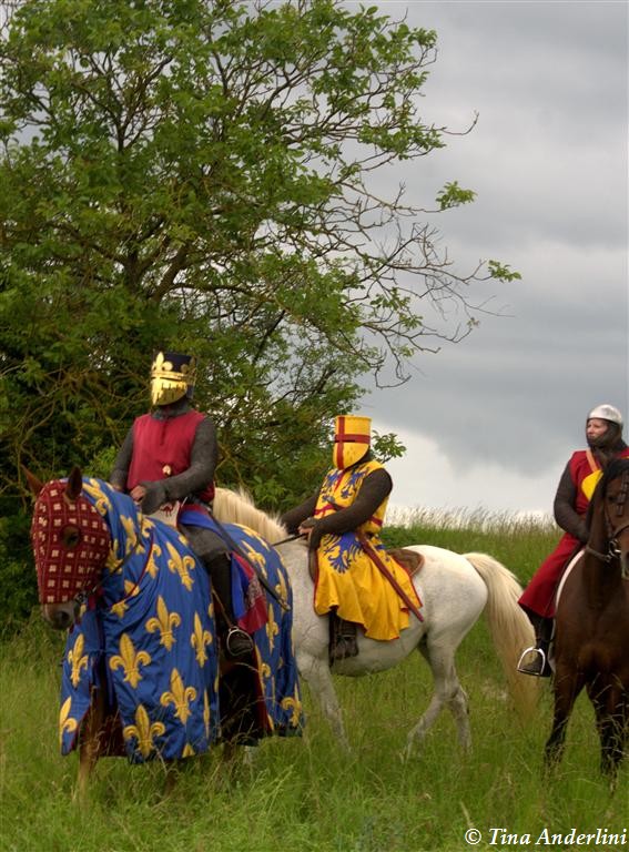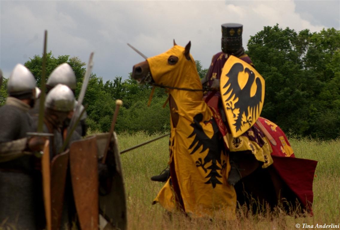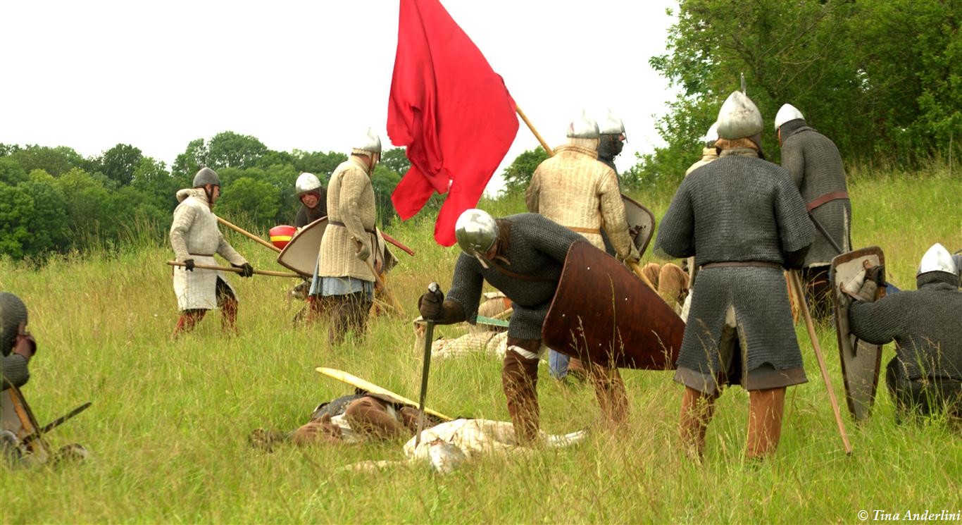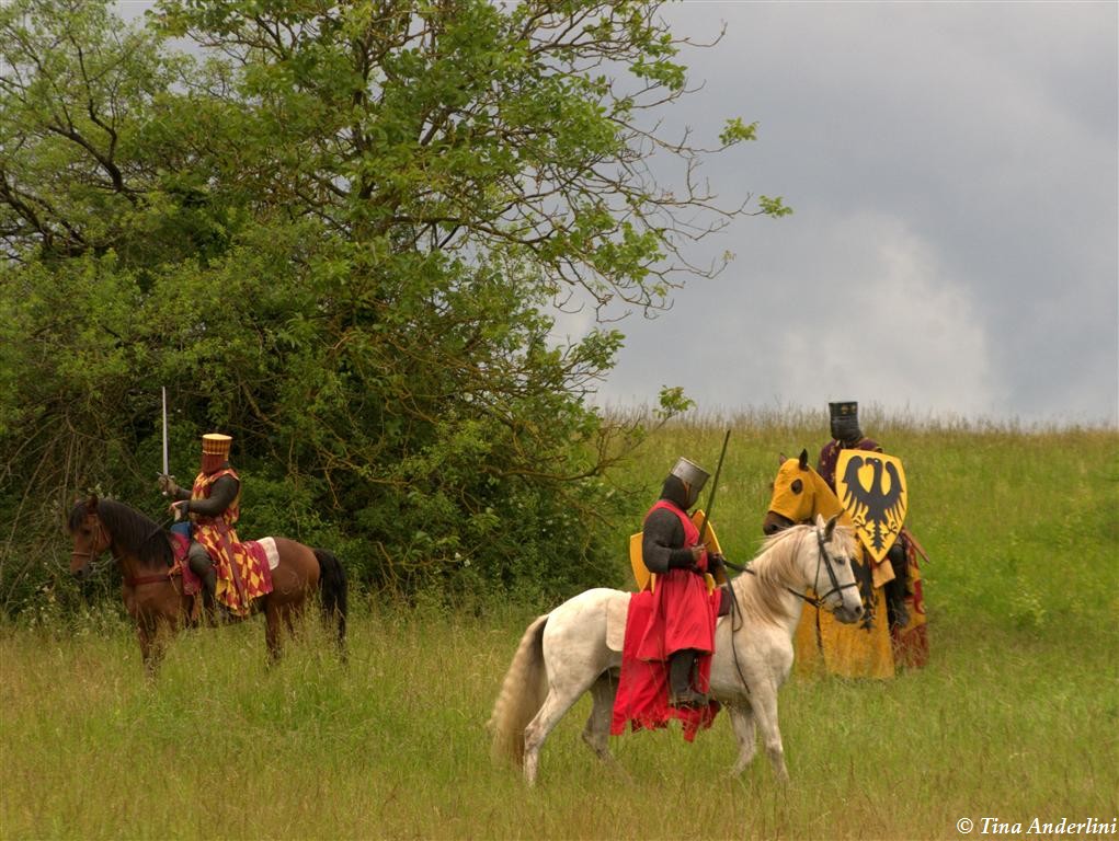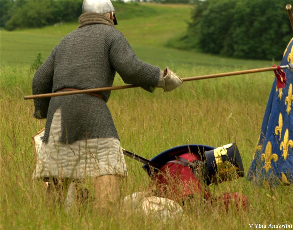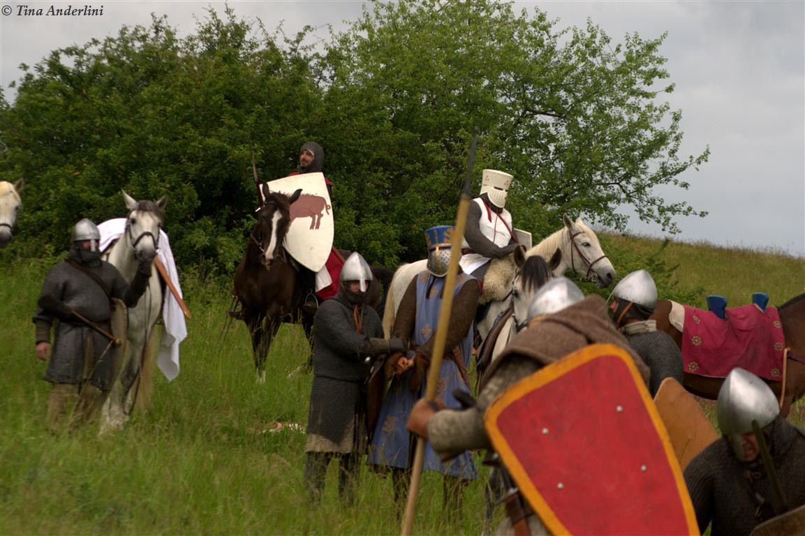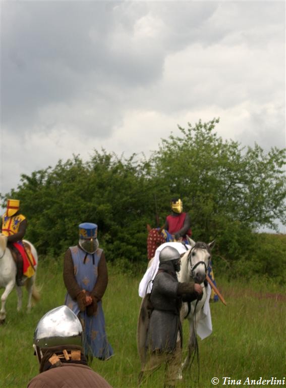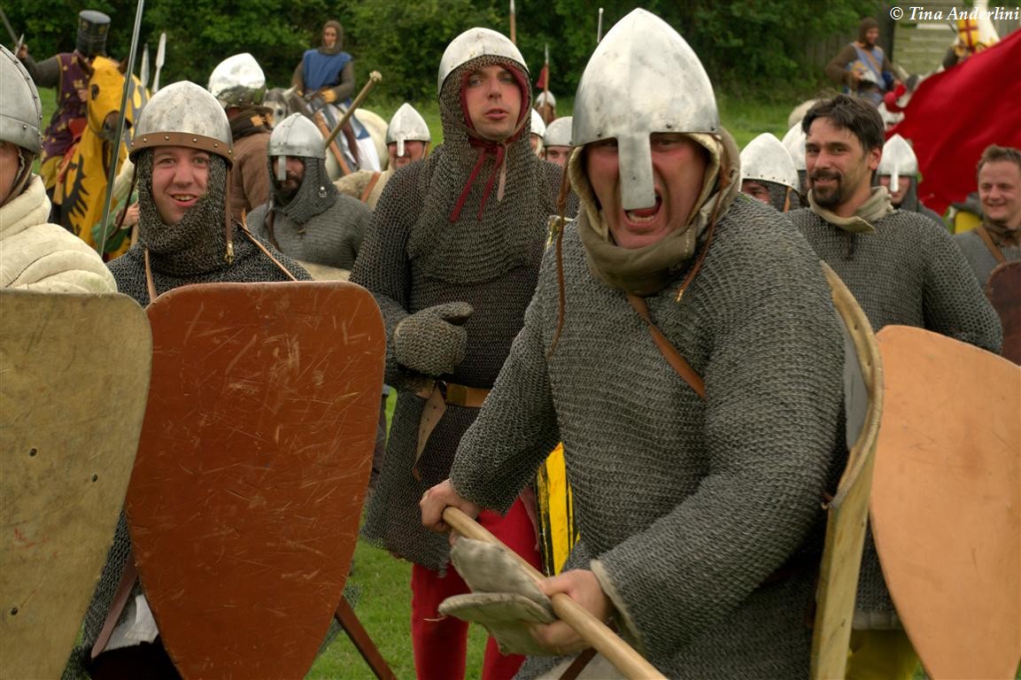 Фестиваль Битва при БувинеБитва при Бувине – сражение 27 июля 1214 года между войсками французского короля Филиппа II Августа и англо-фламандско-немецкой коалиции, возглавляемой императором Священной Римской империи Оттоном IV. Завершилась победой французов и усилением королевской Франции. Конница противников была построена отдельными колоннами. Пехота (лучники, копейщики) располагались впереди рыцарей. В задачу пехоты входило служить живым бруствером для рыцарской конницы. Так, один из отрядов армии Оттона выделил несколько сот пехотинцев, создавших своего рода круг. В ходе сражения рыцари по мере необходимости скрывались в этом «убежище» и приводили себя в порядок. Само сражение протекало в форме отдельных схваток отрядов и групп рыцарей. Никакого общего руководства не было; император и король сражались как рядовые рыцари. Битва закончилась победой французов. В бою отличился епископ-воин Филипп де Дрё. Он пользовался палицей, отказавшись от режущего оружия, как кровоточительного, – согласно каноническим законам, запрещавшим священникам проливать кровь. Цитата из описания битвы при Бувине: «Левое крыло французов долго не могло справиться с войсками Солсбери и Рено Булонского, укрывавшегося в каре своих брабансонов, но положение союзников и здесь было поколеблено атакой, которую произвел епископ Бове со своими милициями. «Страшный епископ», вооруженный палицей, лично поразил Солсбери и многих других неприятельских воинов.» Ниже на фотографиях представлена реконструкция битвы проводимая на фестивале Bouvines 1214, на том месте где 700 лет назад проходило это сражение. Это мероприятие отличает не большое количество участников, а высокий уровень достеверности в исторической реконструкции первой половины 13 века. Одежда, оружие, доспехи, снаряжение всадника и коня отличается большой аутентичностью. Бои постановочные, репетицию боев можно посмотреть на этой странице. Официальный сайт фестиваля: www.bouvines1214.org.