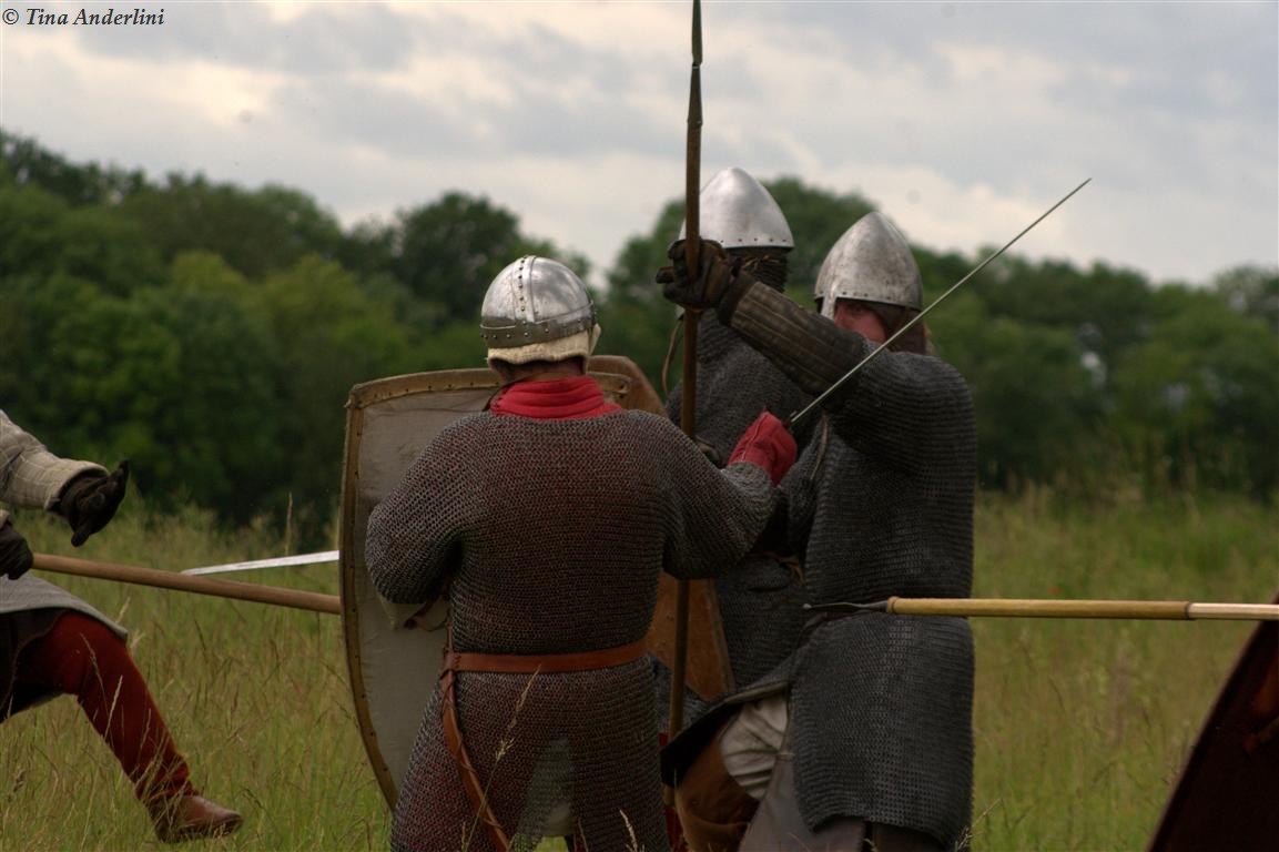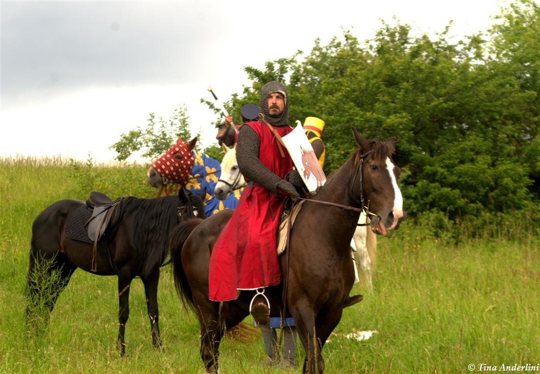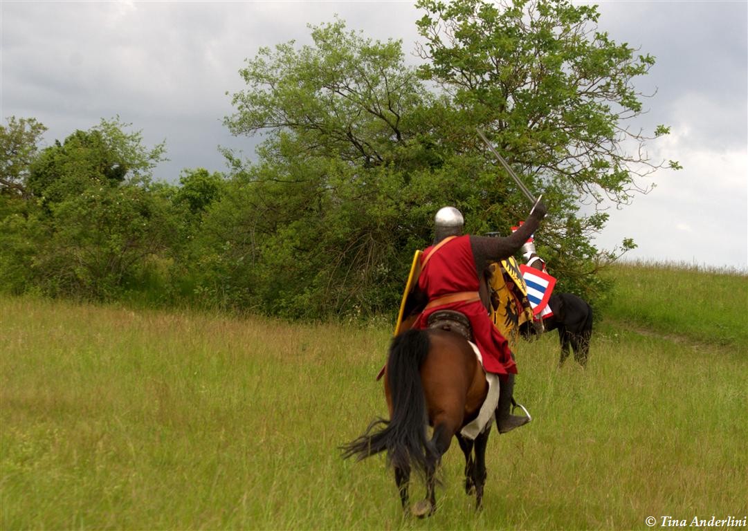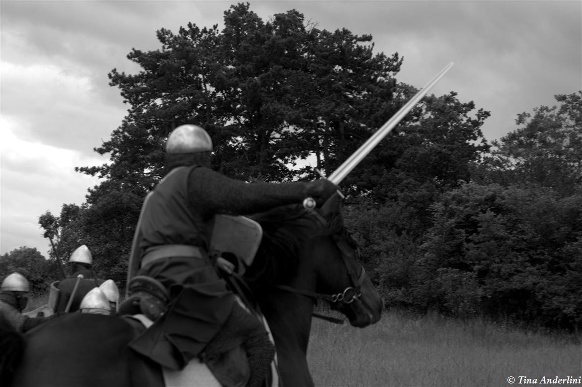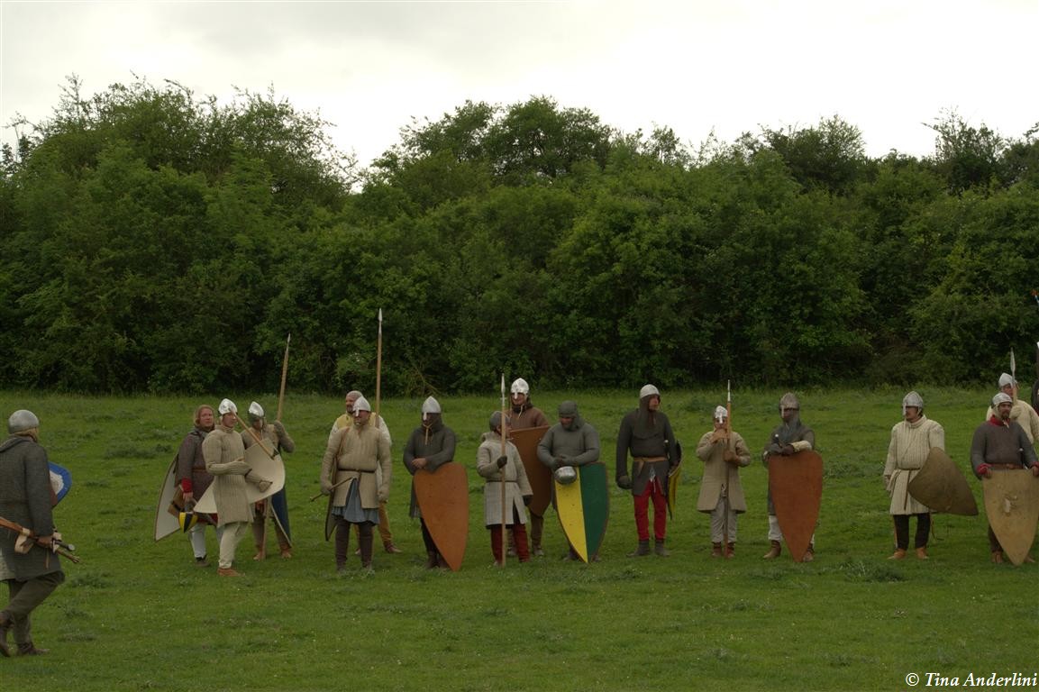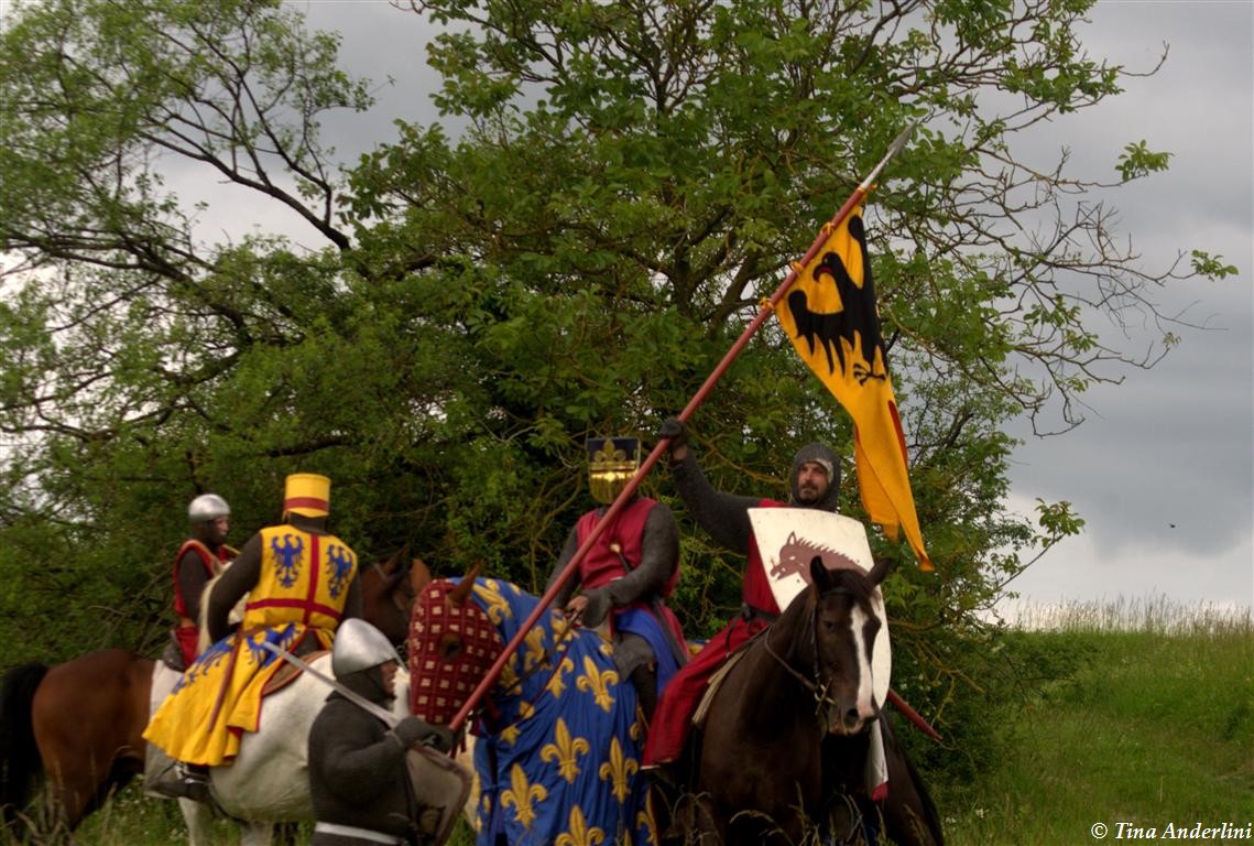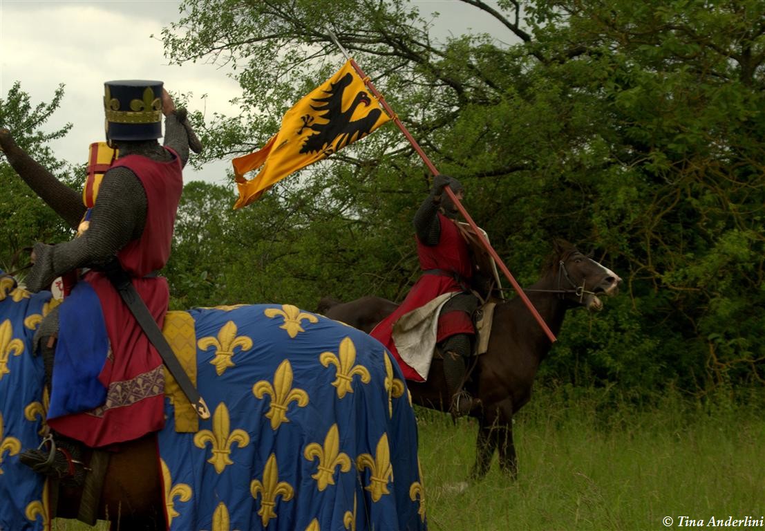 Фестиваль Битва при БувинеБитва при Бувине – сражение 27 июля 1214 года между войсками французского короля Филиппа II Августа и англо-фламандско-немецкой коалиции, возглавляемой императором Священной Римской империи Оттоном IV. Завершилась победой французов и усилением королевской Франции. Конница противников была построена отдельными колоннами. Пехота (лучники, копейщики) располагались впереди рыцарей. В задачу пехоты входило служить живым бруствером для рыцарской конницы. Так, один из отрядов армии Оттона выделил несколько сот пехотинцев, создавших своего рода круг. В ходе сражения рыцари по мере необходимости скрывались в этом «убежище» и приводили себя в порядок. Само сражение протекало в форме отдельных схваток отрядов и групп рыцарей. Никакого общего руководства не было; император и король сражались как рядовые рыцари. Битва закончилась победой французов. В бою отличился епископ-воин Филипп де Дрё. Он пользовался палицей, отказавшись от режущего оружия, как кровоточительного, – согласно каноническим законам, запрещавшим священникам проливать кровь. Цитата из описания битвы при Бувине: «Левое крыло французов долго не могло справиться с войсками Солсбери и Рено Булонского, укрывавшегося в каре своих брабансонов, но положение союзников и здесь было поколеблено атакой, которую произвел епископ Бове со своими милициями. «Страшный епископ», вооруженный палицей, лично поразил Солсбери и многих других неприятельских воинов.» Ниже на фотографиях представлена реконструкция битвы проводимая на фестивале Bouvines 1214, на том месте где 700 лет назад проходило это сражение. Это мероприятие отличает не большое количество участников, а высокий уровень достеверности в исторической реконструкции первой половины 13 века. Одежда, оружие, доспехи, снаряжение всадника и коня отличается большой аутентичностью. Бои постановочные, репетицию боев можно посмотреть на этой странице. Официальный сайт фестиваля: www.bouvines1214.org.