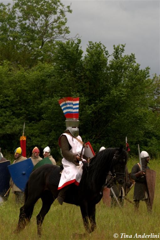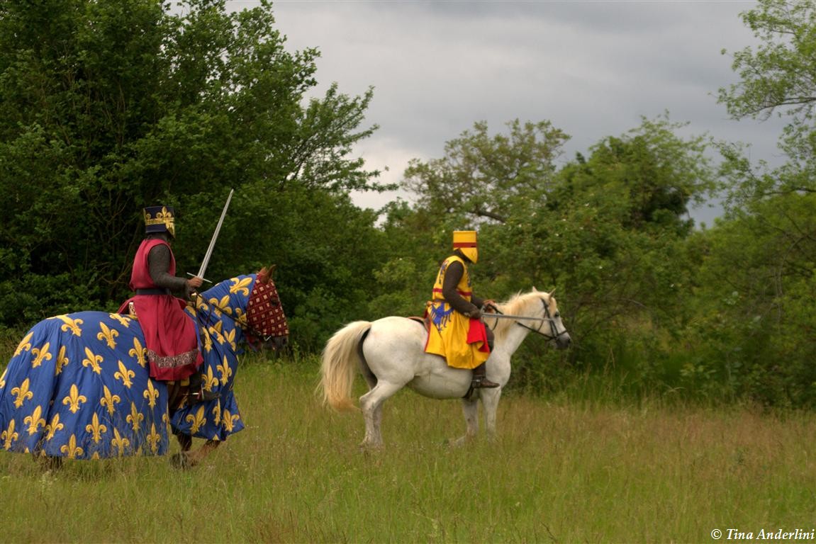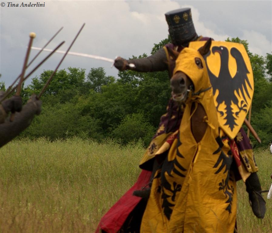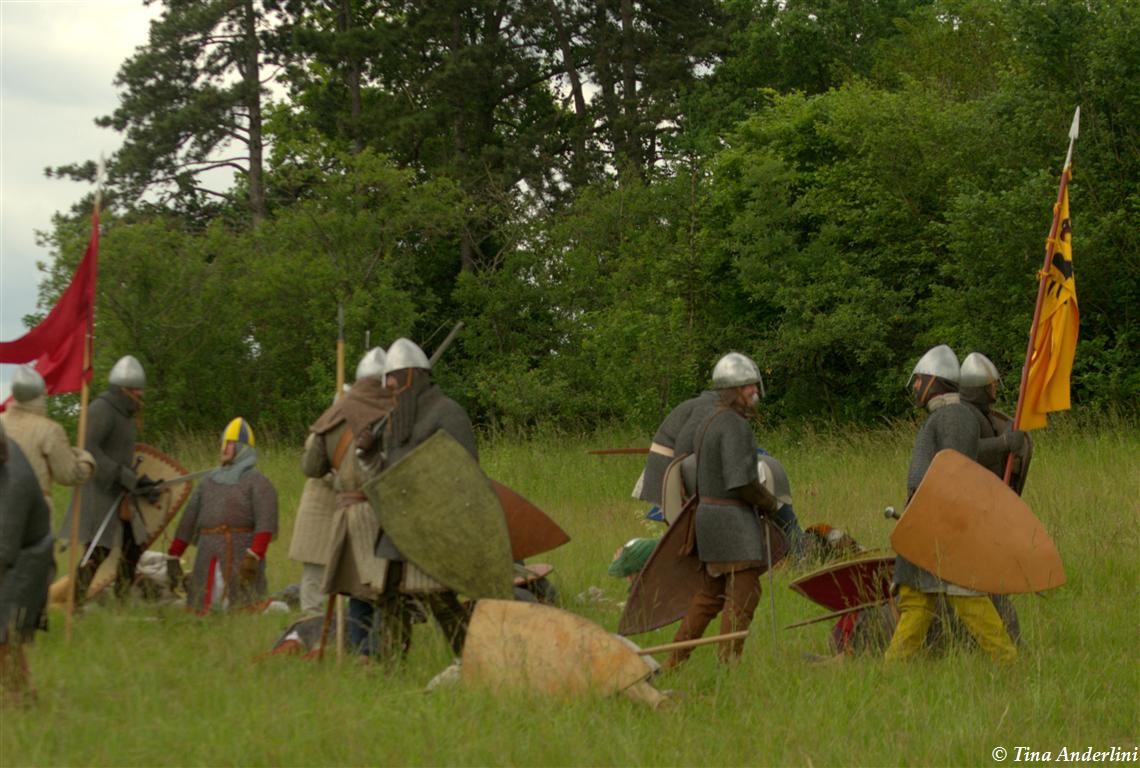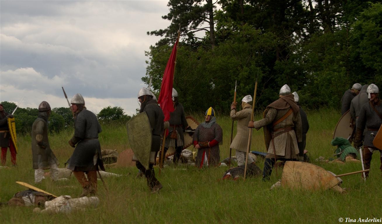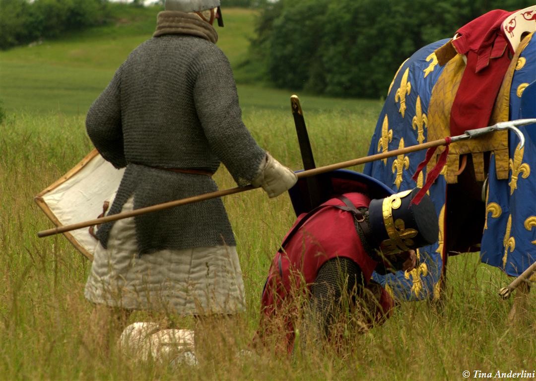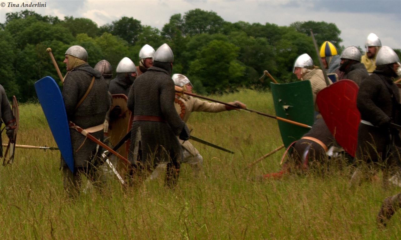 Фестиваль Битва при БувинеБитва при Бувине – сражение 27 июля 1214 года между войсками французского короля Филиппа II Августа и англо-фламандско-немецкой коалиции, возглавляемой императором Священной Римской империи Оттоном IV. Завершилась победой французов и усилением королевской Франции. Конница противников была построена отдельными колоннами. Пехота (лучники, копейщики) располагались впереди рыцарей. В задачу пехоты входило служить живым бруствером для рыцарской конницы. Так, один из отрядов армии Оттона выделил несколько сот пехотинцев, создавших своего рода круг. В ходе сражения рыцари по мере необходимости скрывались в этом «убежище» и приводили себя в порядок. Само сражение протекало в форме отдельных схваток отрядов и групп рыцарей. Никакого общего руководства не было; император и король сражались как рядовые рыцари. Битва закончилась победой французов. В бою отличился епископ-воин Филипп де Дрё. Он пользовался палицей, отказавшись от режущего оружия, как кровоточительного, – согласно каноническим законам, запрещавшим священникам проливать кровь. Цитата из описания битвы при Бувине: «Левое крыло французов долго не могло справиться с войсками Солсбери и Рено Булонского, укрывавшегося в каре своих брабансонов, но положение союзников и здесь было поколеблено атакой, которую произвел епископ Бове со своими милициями. «Страшный епископ», вооруженный палицей, лично поразил Солсбери и многих других неприятельских воинов.» Ниже на фотографиях представлена реконструкция битвы проводимая на фестивале Bouvines 1214, на том месте где 700 лет назад проходило это сражение. Это мероприятие отличает не большое количество участников, а высокий уровень достеверности в исторической реконструкции первой половины 13 века. Одежда, оружие, доспехи, снаряжение всадника и коня отличается большой аутентичностью. Бои постановочные, репетицию боев можно посмотреть на этой странице. Официальный сайт фестиваля: www.bouvines1214.org.
