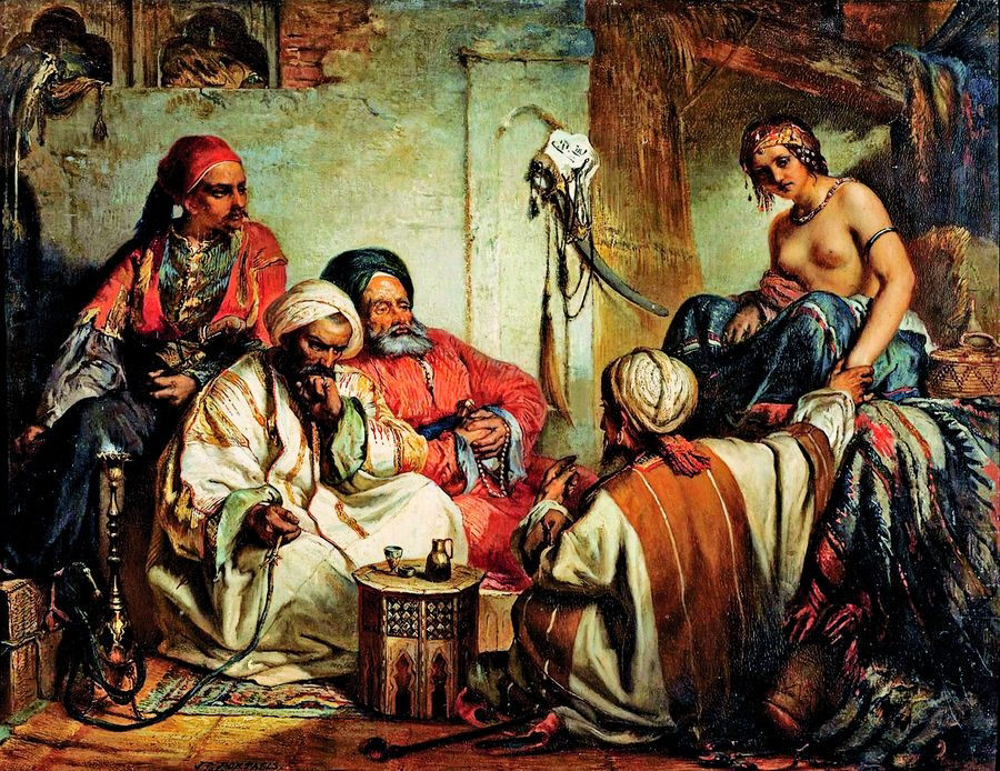 | Мальтийский художник Амедео Прециози (1816 - 1882) акварель "В турецкой кофейне" 1858 год | Амедео Прециози. Стамбульские лодки |