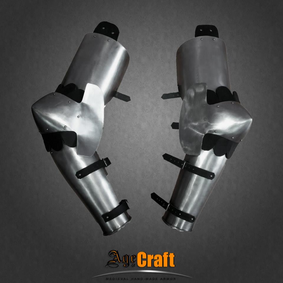 Латная защита рук и локтей, из Западной Европы. Конец XIV-го века. Прототип их можно увидеть на надгробии Герхарда фон Ринек (Gerhard von Rieneck), 1382. В ней используется меньше сегментов, поэтому стыки сегментов закрыты лоскутами кожи. Толщина 1-1,2 мм, вес 2,2 кг.