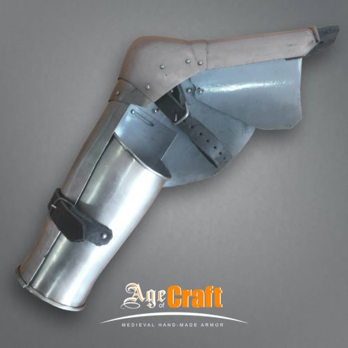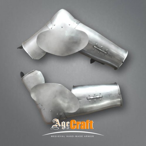 Латная защита рук и локтей, из Западной Европы. Конец XIV-го века. Прототип их можно увидеть на надгробии Герхарда фон Ринек (Gerhard von Rieneck), 1382. В ней используется меньше сегментов, поэтому стыки сегментов закрыты лоскутами кожи. Толщина 1-1,2 мм, вес 2,2 кг.