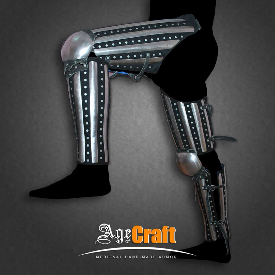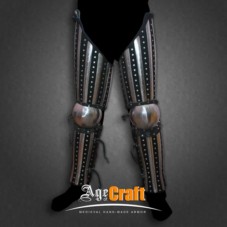 Одна из популярных видов защиты ног в середине XIV-го века, она использоваласть параллельно иногда и совмесно с кольчужными чулками. Подобная защита ног использовалассь совмесно с чешуйчатой защитой ступней и бригантной защитой корпуса. Кисти рук были защищены перчатками "Песочные часы", а сами руки также были защищены подобной броней.
