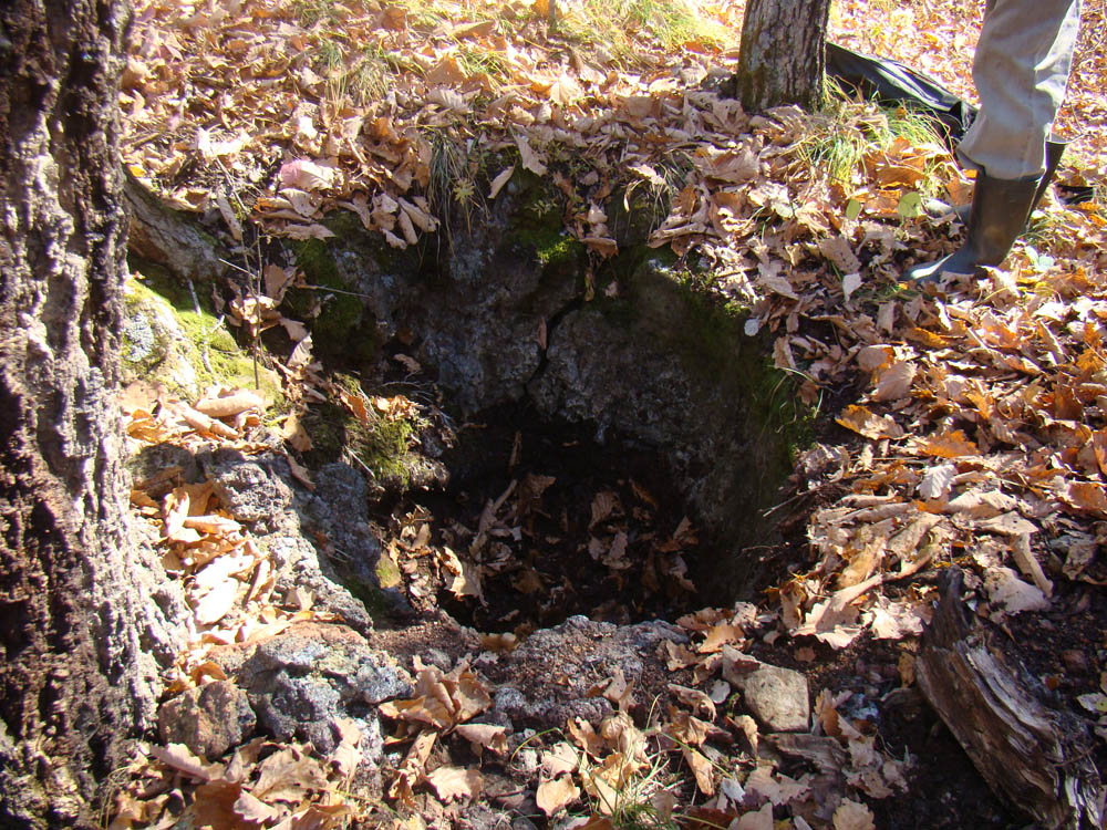Это не район барабашевских пещер. Печь находится на берегу лесного ключика (не болото) Берег под дерном вулканическая порода (камень), в нем печка выдолблена, принцип ступы. В самой печи по стенкам наблюдается следы оплавленного железа. Кусочки железа разбросаны вокруг, его очень много в самом русле ключа.