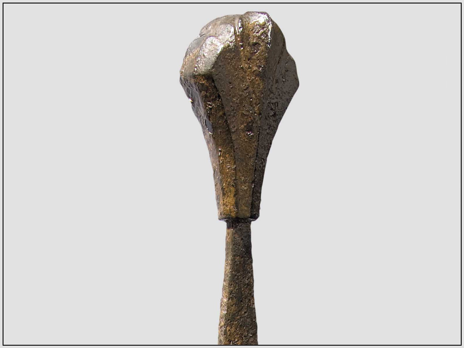 Вот такой образец меча из углеродистой стали ЕN45 с тремя глубокими долами, подверженного зональной закалке в Armourclass of Glasgow. Дизайн навершия основан на примере из Кастильонского клада (Castillon Hoard), датированного 1453 годом.