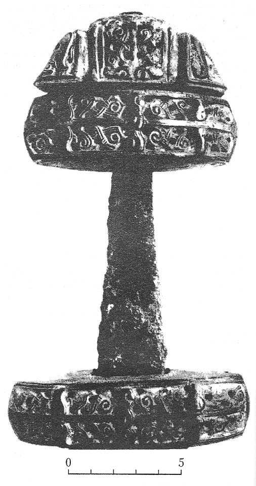 Меч с рельефными украшениями рукояти из раскопок Гнёздовского могильника