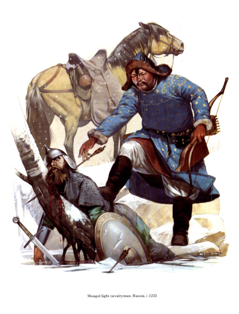 На последнее свидетельство следует обратить более пристальное внимание. Дело в том, что многие современники именно лук называют главным оружием монголов. Так, Пэн Да-я и Сюй Тин свидетельствуют: «Их обычаи – стрельба из лука ...»; и далее: «Если перейти к самому главному из их видов вооружения, то лук со стрелами будет на первом месте (выделено нами. -Ю.К.), а сабля – на следующем после них». Об этом же говорит и упомянутый выше пленный англичанин: «... они без устали и храбро сражаются копьями, палицами, секирами и мечами, но предпочтение отдают лукам (выделено нами. - Ю.К.) и метко, с большим искусством из них стреляют ...». Про это в письме, адресованном английскому королю Генриху III, пишет и император Священной Римской Империи Фридрих П Гогенштауфен: «... луки являются для них самым привычным оружием (выделено нами. - Ю.К.), наряду со стрелами и прочим метательным оружием ...». То же отмечают и доминиканский монах Винсент из Бове: «... более всего они полагаются на луки и стрелы ...» (выделено нами. - Ю.К.), и монах-премонстрант Хетум Патмич: «Татары – отличные наездники и прекрасно владеют оружием, особенно луком и стрелами» (выделено нами - Ю.К.). А вот свидетельство венецианца Марко Поло, который, как известно, достаточно долго прожил среди монголов, служа хану Хубилаю: «... всего больше они пускают в дело лук (выделено нами. - Ю.К.), потому что ловкие стрелки».