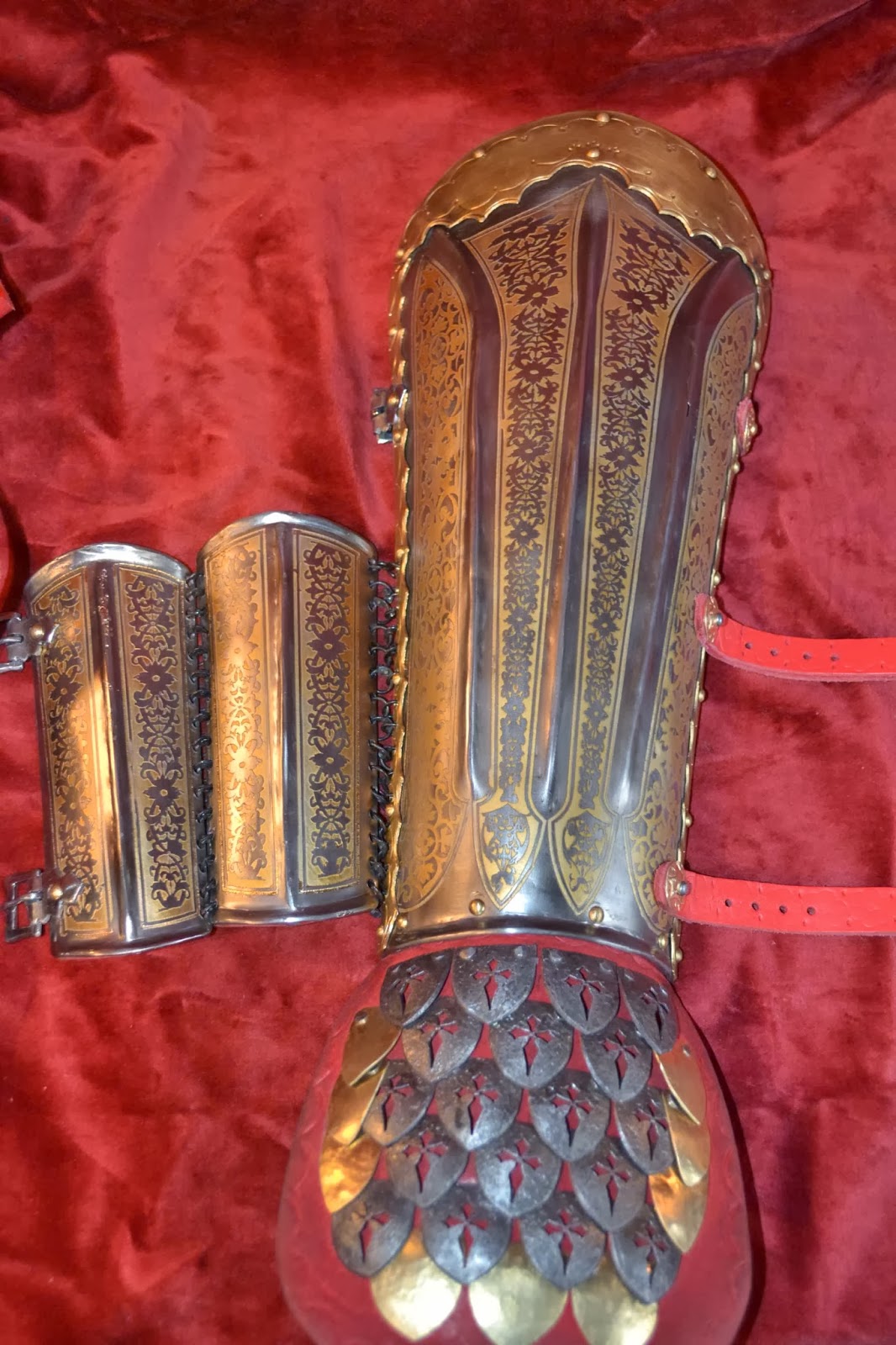 Наручи-лодочки "Карваши" с чешуйчатой рукавицейНаручи стальные кованые в форме лодочки, украшены инкрустацией латунью. К каждому наручу прикреплена чешуйчатая рукавица. Рукавица незамкнутая – так было принято у польских гусар, так удобно фехтовать саблей.