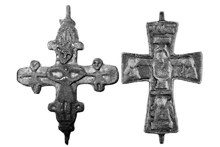 Створка найденная в Тульской области выполнена, скорее всего, русским мастером, возможно видевшим подобный энколпион импортного производства. Датировка, предположительно, XIII век. Не совсем понятные вертикальные полосы над головой Спасителя, возможно означают нисхождение Святого Духа на умершего, после чего наступает Воскресение. Таким образом, и оба энколпиона, и иконы этой тематики, отражают страстной цикл богослужения.