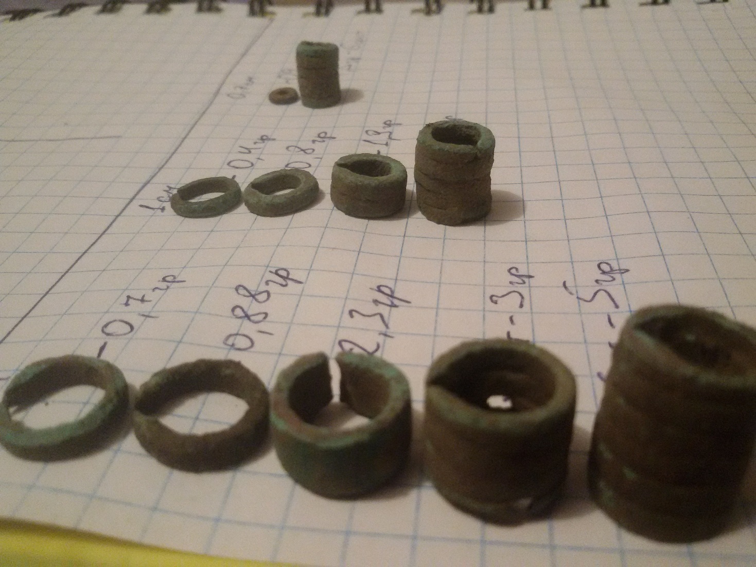 И еще..Думаю было допустим эти четыре вида платежных единиц три вида колец и скрученные в леечку пластины меди.