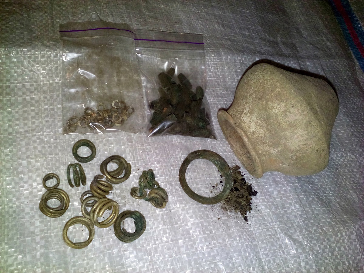 Хотелось бы в доказательство,что это триполье,добавить другой комплект для сравнения.Все было вот в этом горшочке.Серебро, медь, керамика.