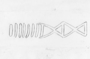 И тут началось самое интересное. Занимался последней шлифовкой и доводкой клинка,так ничего на нём и не обнаружив интересного кроме крестообразных насечек на шариках гарды,как супруга проходила мимо и говорит что на клинке видит иксы. Думали глюк. Ан,нет - под определённым углом освещения увидели иксы и поперечные риски. Совсем непонятно стало как это может быть. Перевернули клинок другой стороной,и под тем же углом увидели и ахнули надпись. На фото очень тяжело передать видимое под углом,но кажется всё же видно. Поднял книгу Кирпичникова и просто прозрели. Цитата – «Удивительное обилие надписей и знаков, проступивших вдруг на вещах, давно и хорошо известных, объясняется производственными особенностями клеймения. Это звучит почти неправдоподобно, но волшебное свойство мет заключается в том, что в зависимости от сохранности и ухода они могут то исчезать, то появляться вновь. Надписи и знаки на изделиях IX-XIII веков располагались в верхней трети клинка, они были инкрустированы в горячем состоянии железной или дамаскированной проволокой. Даже на полосе, очищенной от коррозии, начертания почти неразличимы».