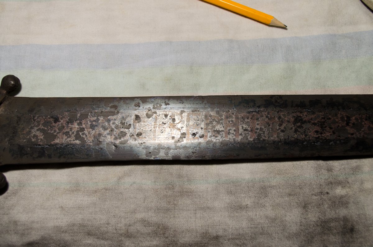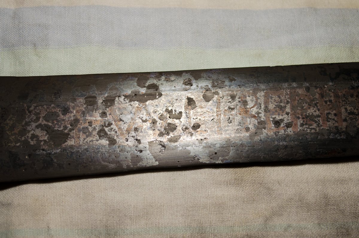 Проступающая надпись на клинке 10-го века Проступающая надпись на клинке 10-го века