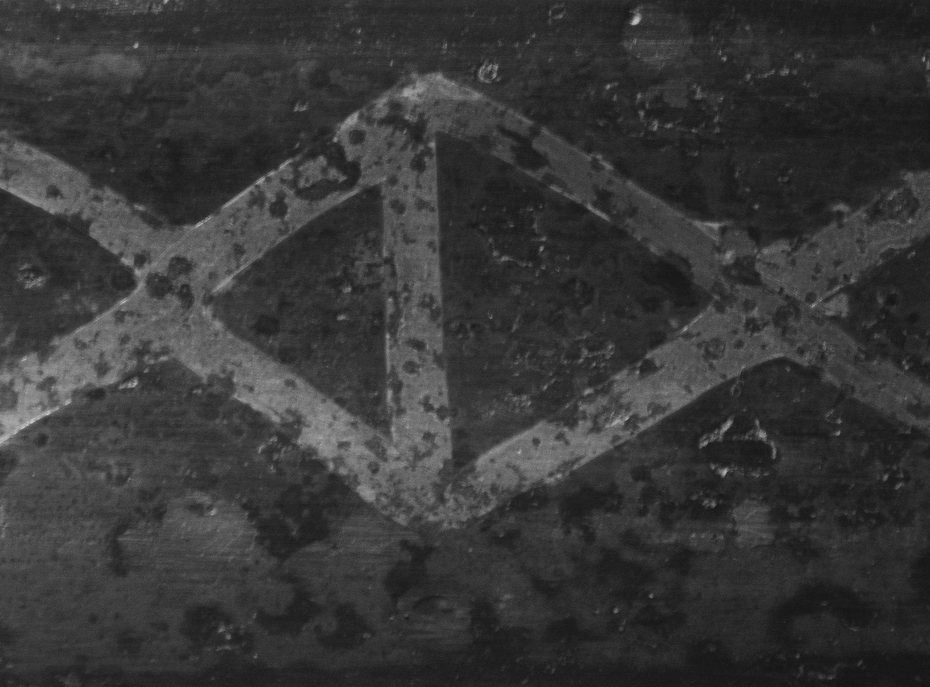 Кажется придумал как проявить все меты на мече. Вот фото фрагмента где хорошо видно в каком порядке укладывалась всекаемая проволока. Специально перевёл фото в чёрно-белые тона для более полного понимания картинки.