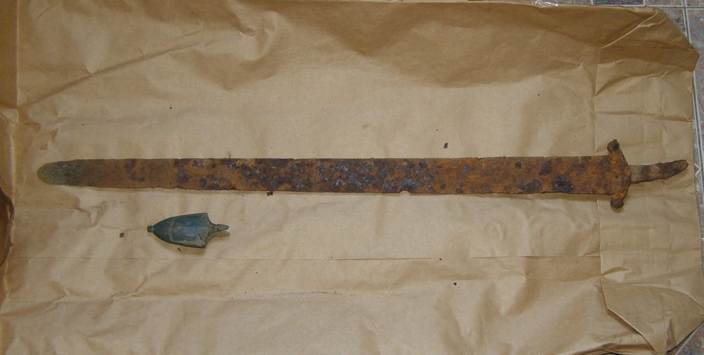 Год назад кладоискатель и реставратор-любитель valja представил общественности меч с сабельной рукоятью. Клинок каролингского меча, а рукоять древне-мадьярской сабли. Примечательно что присутствует и наконечник ножен от каролингского меча, датирующийся второй половиной 10 -первой половиной 11 века. Пруф: Кладоискатель Виолити.