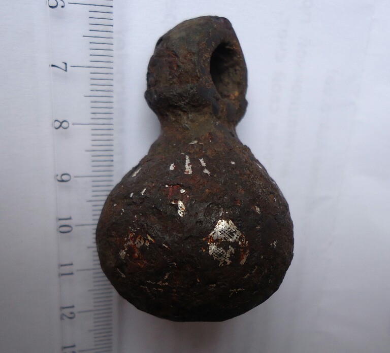 Этот кистень был найден искателем Ёшкинкот, впоследствии продан. Вот такой он имел вид до расчистки и консервации. Пруф