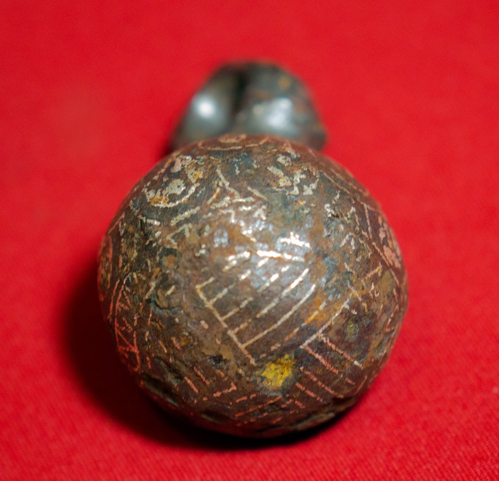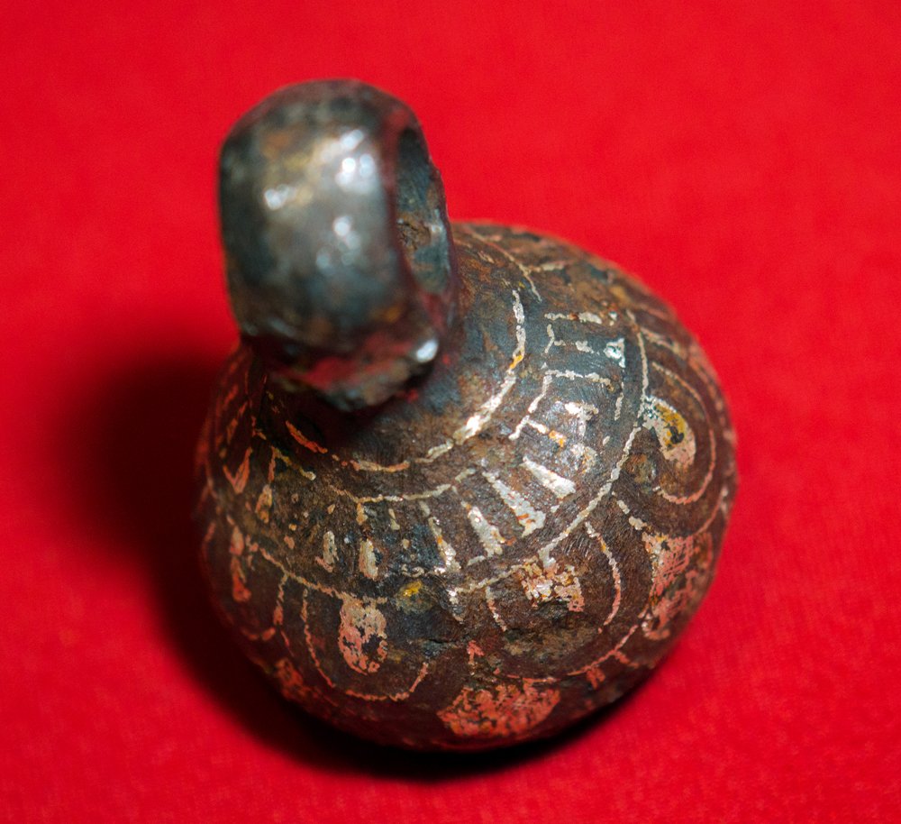 Кистень периода КР с серебряной инкрустацией. Предварительная расчистка