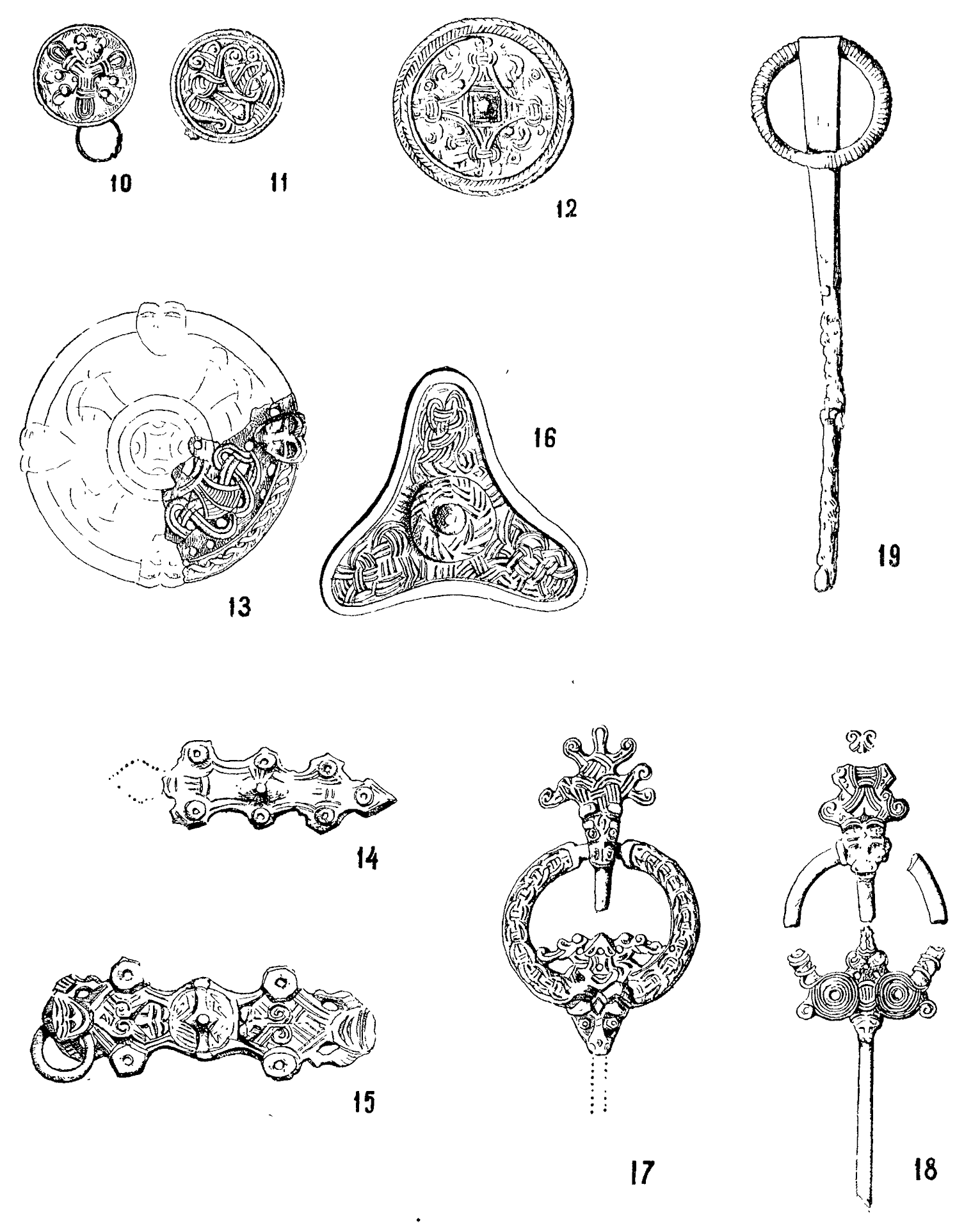 Следует обратить внимание на следующую деталь: в конце IX в. фибулы этого типа имеют широкий ободок, в отличие от фибул середины века.