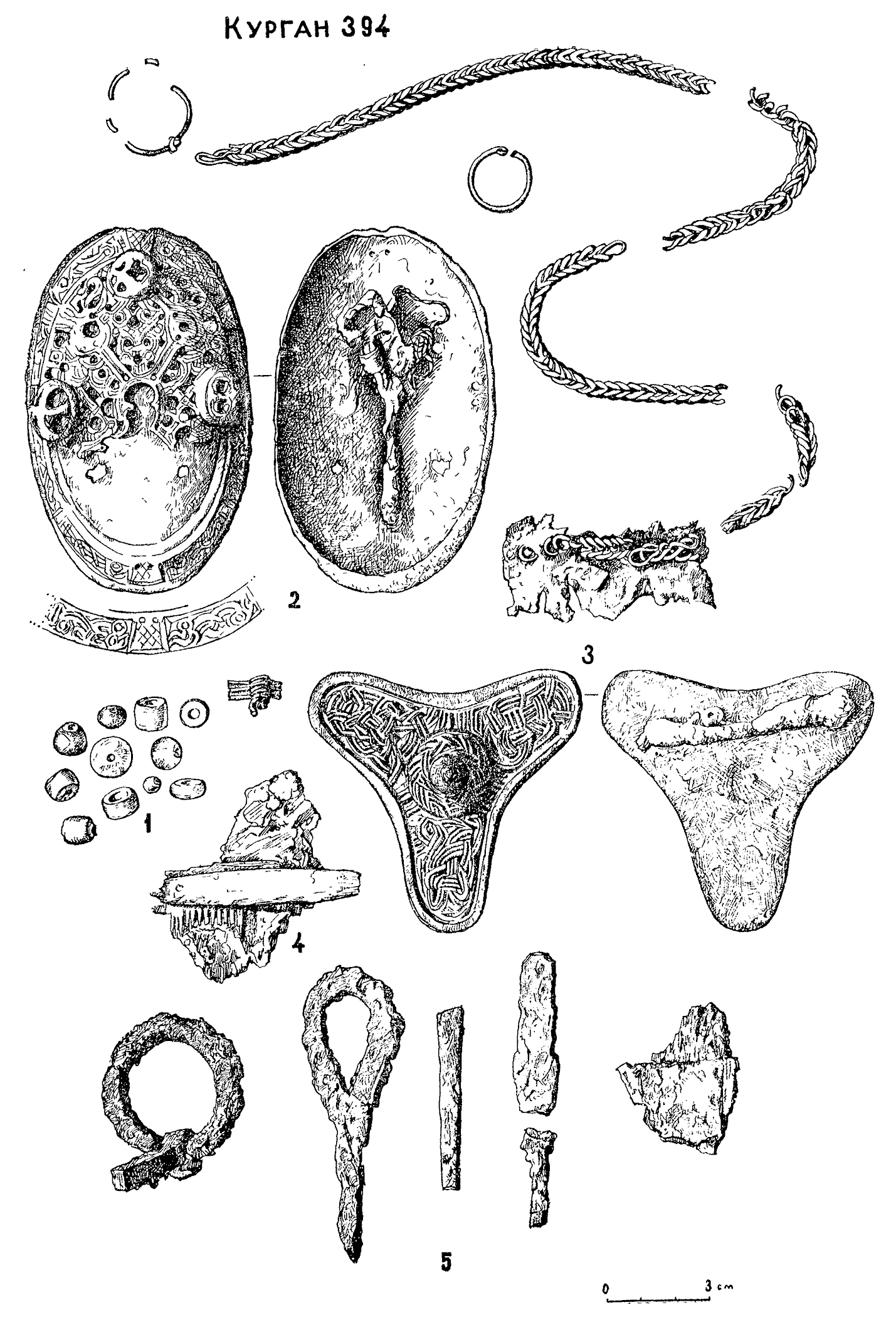 - В. Михайловском в курганах 3, 1921 г. и 20, 1939 г.В Тимереве в курганах 218, 302, 374 и 376.