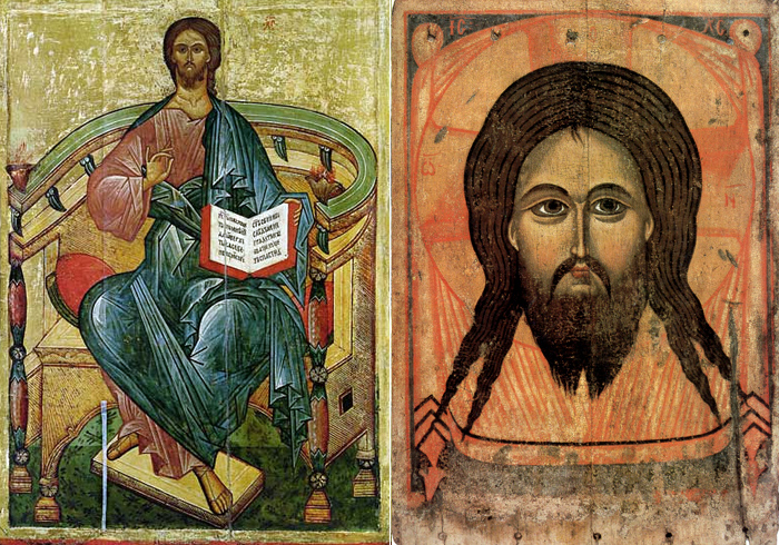 (Рис. 4.2) Иконография Христа: Спас на Престоле. Икона XV в.; / Нерукотворенный образ Спаса. Икона XIV в.
