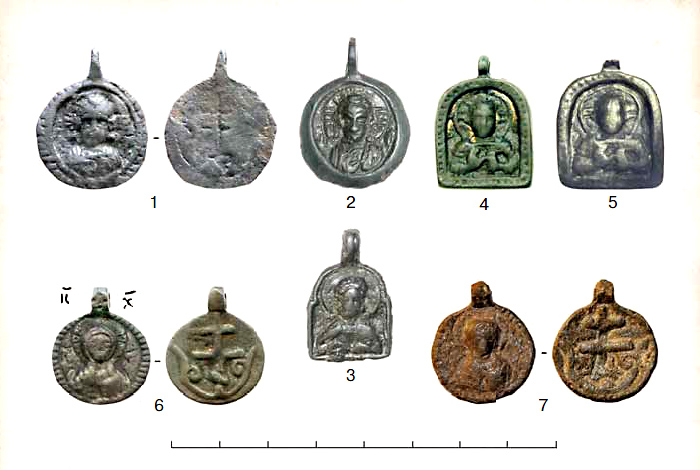 (Табл. I.I.) Иконки-привески с изображением Спаса Эммануила, XI–XIII вв. (1–5) / Иконки-привески с изображением Господа Вседержителя.(6-7)