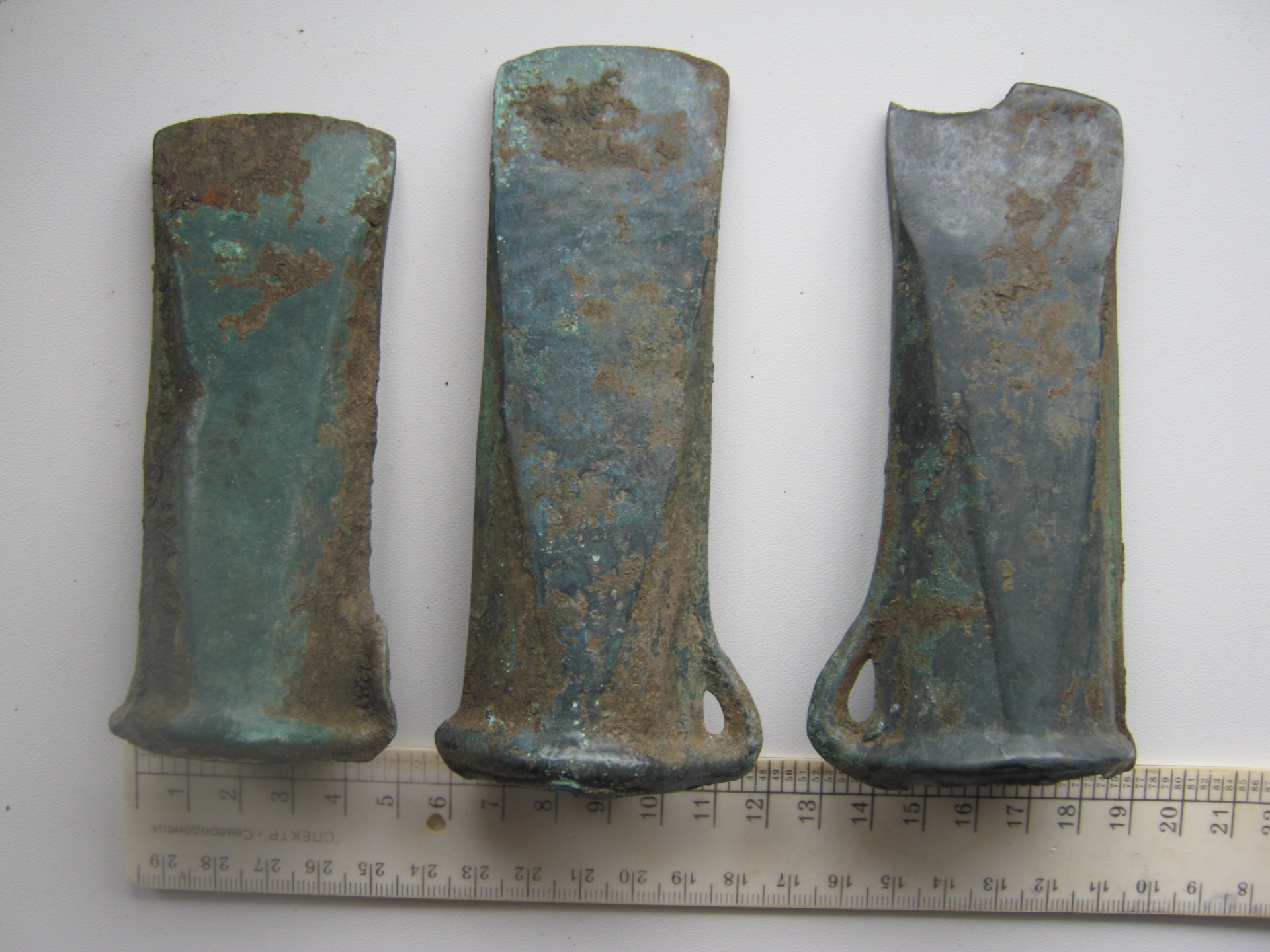 Большое спасибо.Такой наплыв информации...Надо переварить... Казус с топориком произошёл совершенно случайно,из за неаккуратности.Кусочек бронзы(меди)пришлось подпилить-ибо в теме прослеживается тень недоверия к аутентичности предметов. Спасибо за помощ.Удачи Вам.С Уважением Валера.