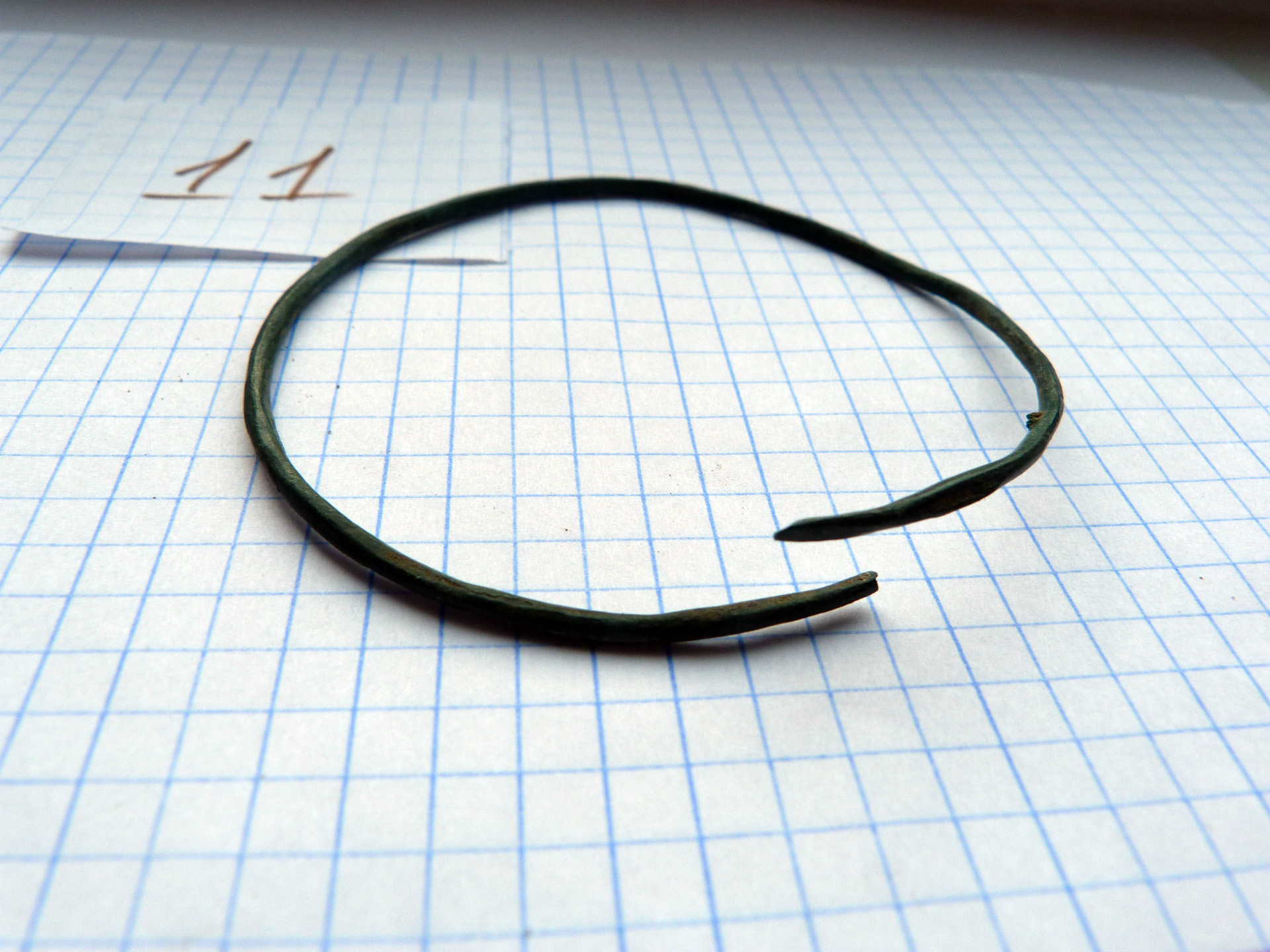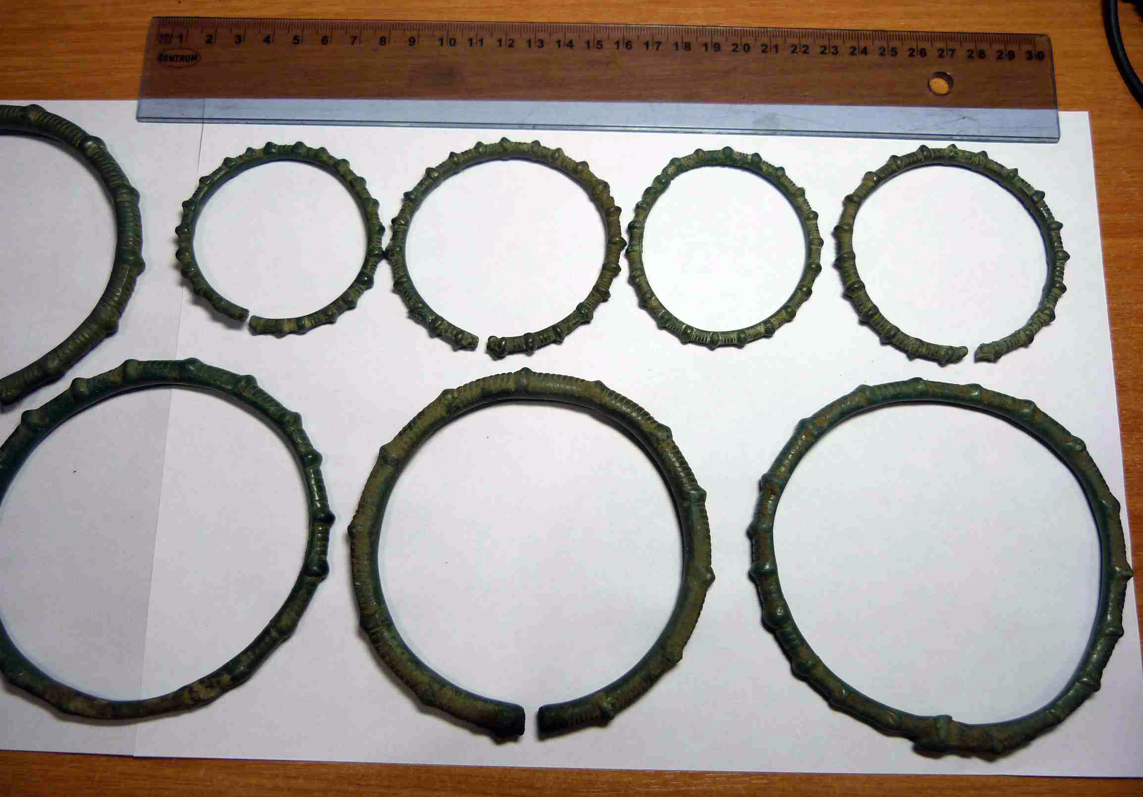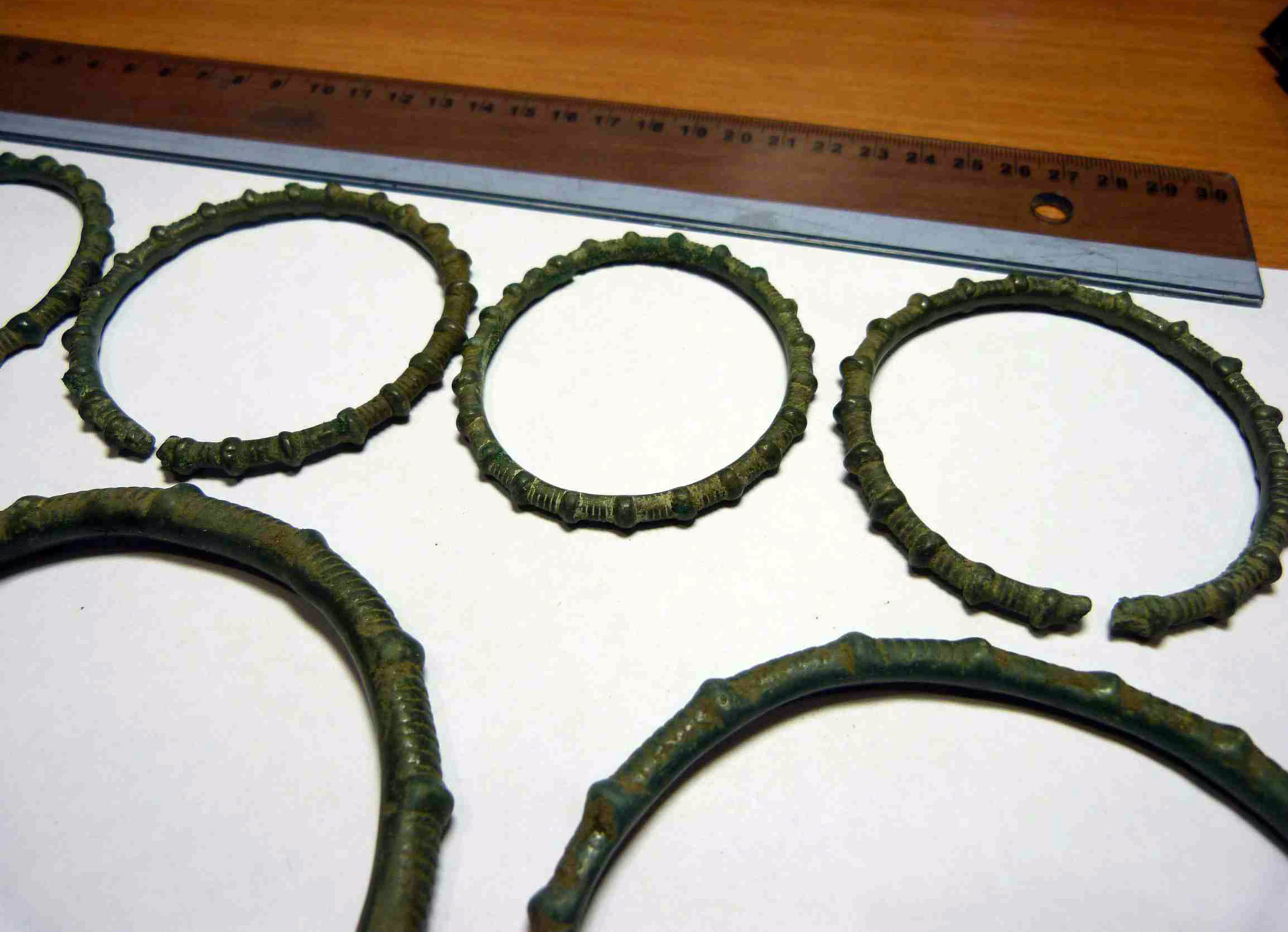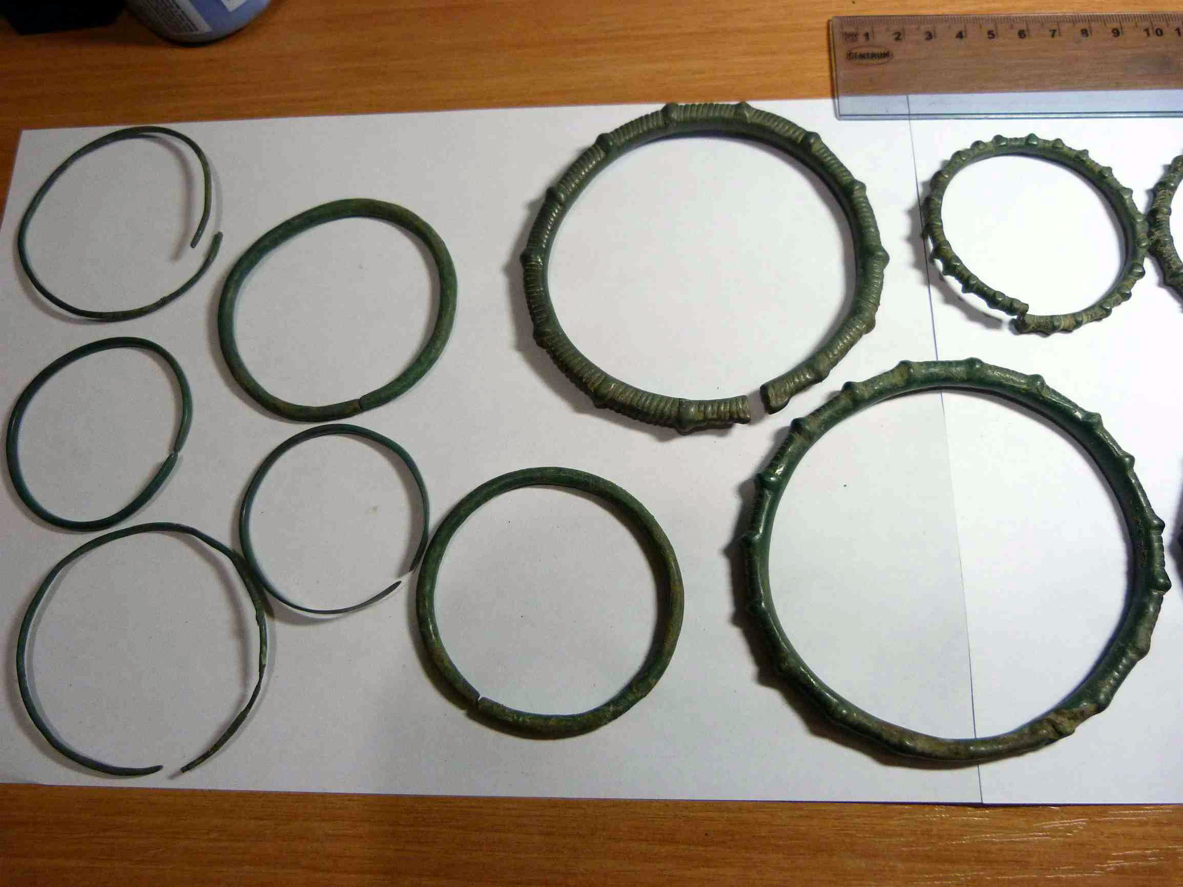 Находка кладоискателя Mumbai нашел клад древних бронзовых браслетов, предположительно киммерийский или раннескифский период, 8-6 века до н.э. 14 предметов в комплексе, номер 8 требует реставрации. Остальные в хорошем состоянии. Регион находки: восток Черниговской области. Пруф: Кладоискатель Виолити