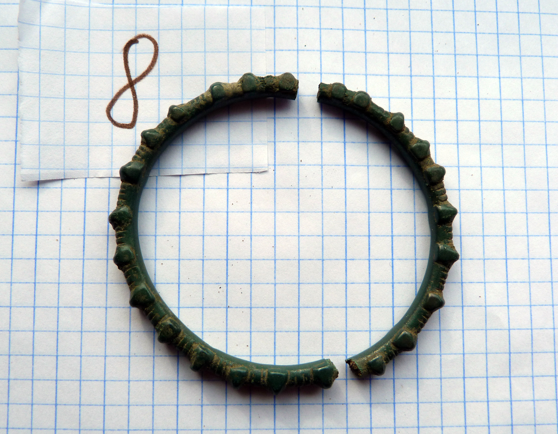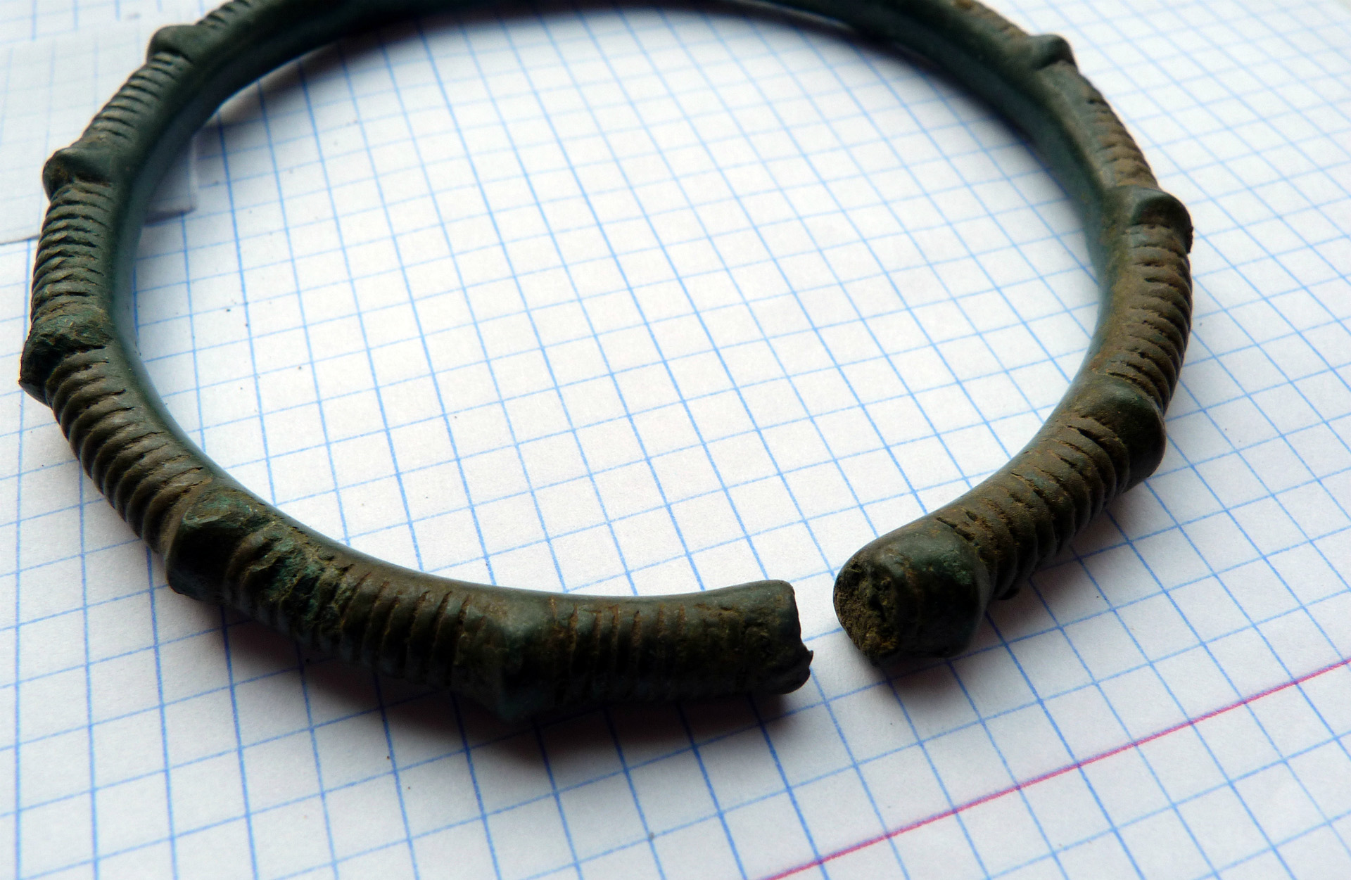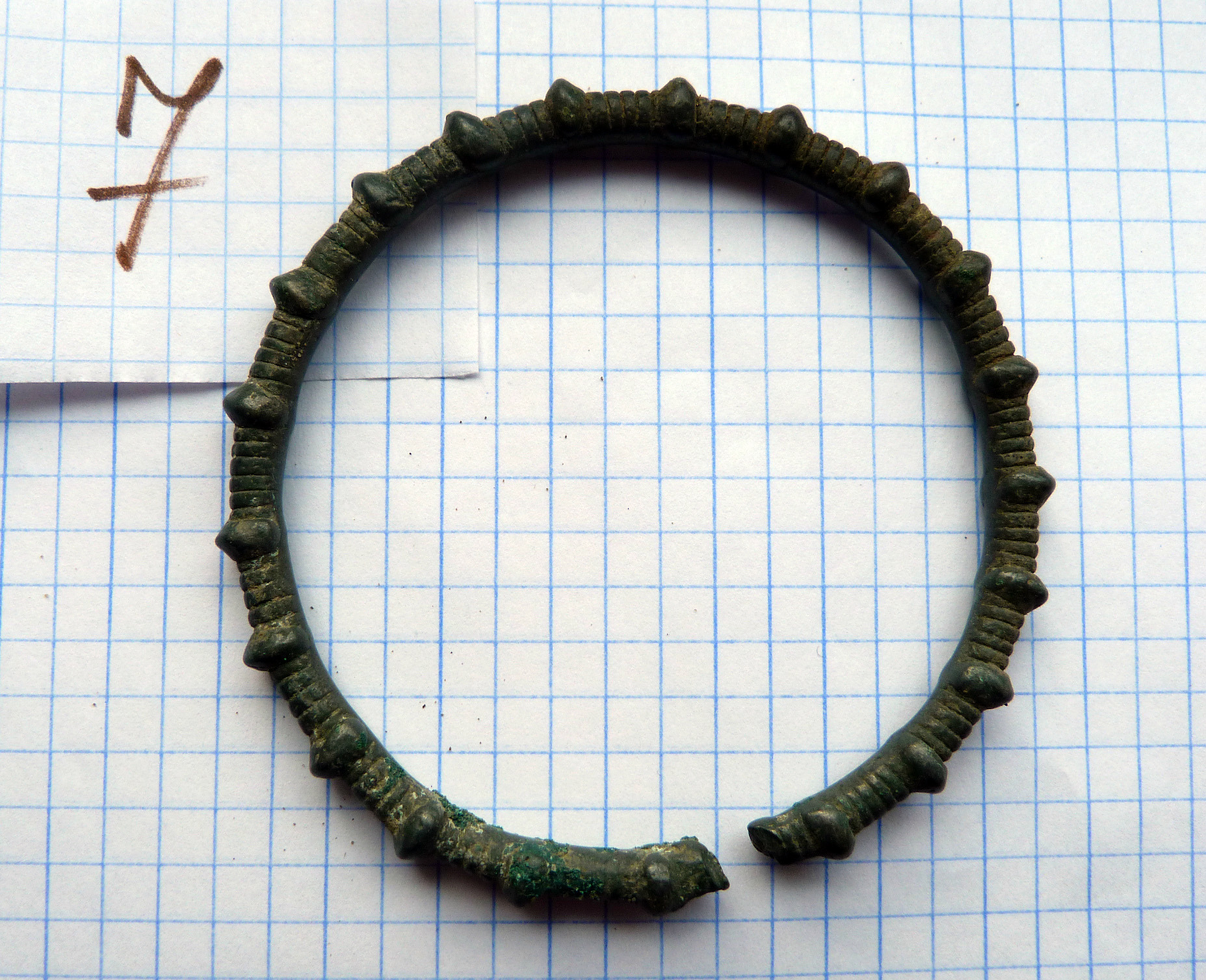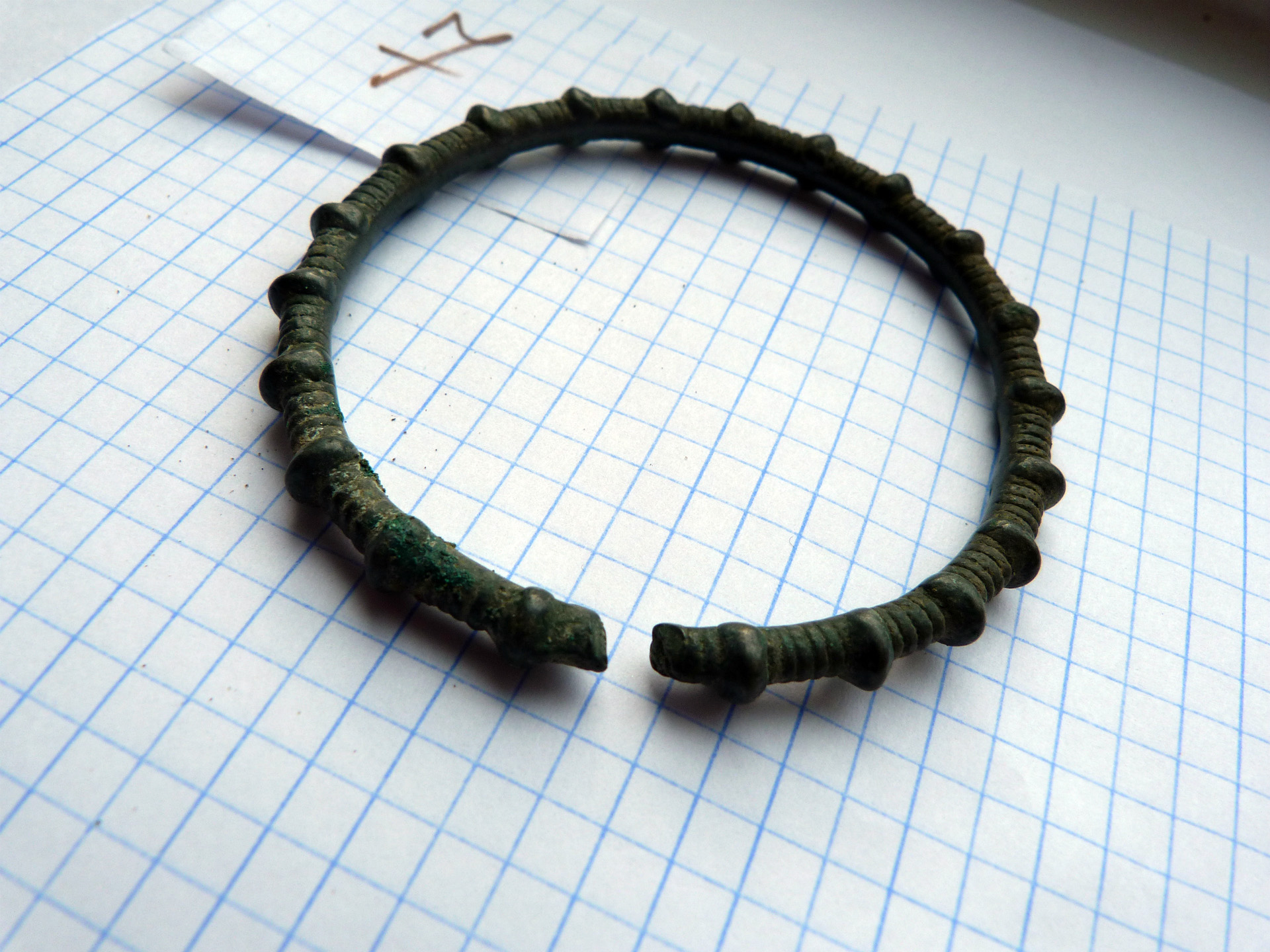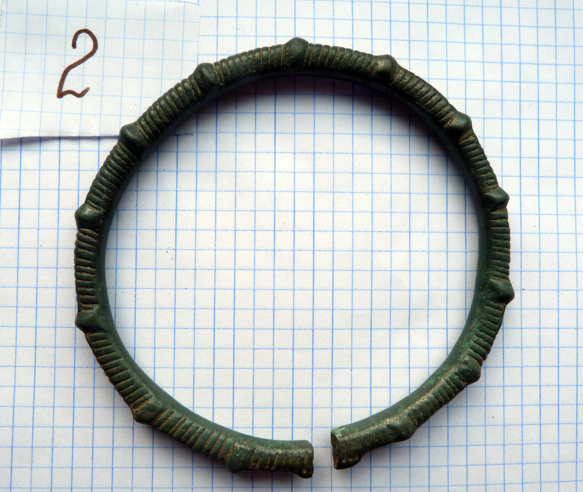 Находка кладоискателя Mumbai нашел клад древних бронзовых браслетов, предположительно киммерийский или раннескифский период, 8-6 века до н.э. 14 предметов в комплексе, номер 8 требует реставрации. Остальные в хорошем состоянии. Регион находки: восток Черниговской области. Пруф: Кладоискатель Виолити