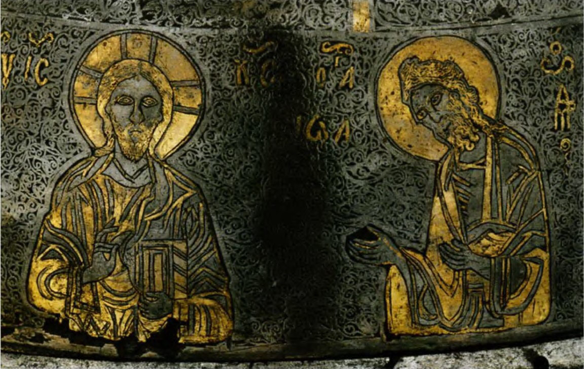 Техника золотой насечки, или платировки, была распространена не только в Западной Европе, но, как мы уже упомянули выше, точных технологических аналогий шлему с Деисусом среди византийских древностей нет.
