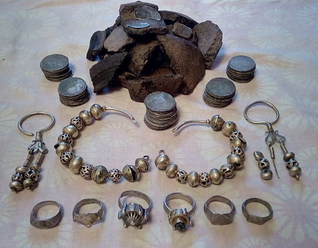 Клад серебра 15 века: колты, серьги, перстни и пражские гроши