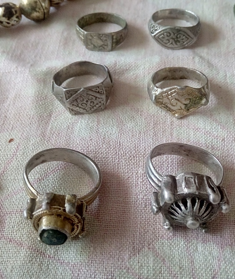 К сожалению, неизвестным остаётся происхождение пары виртуозно выполненных колец, которые хранятся ныне в Музее исторических драгоценностей Украины (инв. №№ Д-6840, Д-6841). Сложная техника их изготовления – с позолотой и поочерёдным расположением сплошных и выполненных из уплощённой витой проволки ажурных бусин, наводит на мысль об участии развитого ювелирного ремесла древнерусских городов (тем более, что такие популярные восточнославянские украшения как височные кольца с тремя ажурными бусинами также отличает близкий стиль исполнения). Тем не менее, водский архетип этих украшений очевиден: мелкие технические детали - завиток, ушко, количество бусин и рельефная муфта для их фиксации вполне соответствуют своим северным аналогам. В любом случае, вполне возможны такие варианты, как заказное изготовление для выходцев из территорий, где подобные украшения были привычны, либо изощрённое повторение знакомых мастеру мотивов.