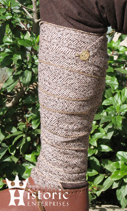 Длинные тканные шерстяные полосы, как правило, 70-100mm в ширину, известны из городских слоёв эпохи викингов, а именно Елисенхоф, Хейтебю, Лондон и Йорк (Elsner 1988; Hägg 1984; 1991; Pritchard 1984; Trott 1988; Walton 1989). Они определены в качестве обмоток голеней, широко представленных в ранне средневековых изобразительных источниках. Большая часть находок соткана саржевым плетением «в ёлочку». Голубые красители были извлечены из нескольких находок в Лондоне и Йорке (Pritchard 1984). Закрученный металлические метки, или так называемые «обмоточные крючки», являются наиболее распространенными в Англии, но особенно сложные примеры литых известны из Швеции и России. Двое из них были расположены рядом с коленями мужского скелета в Бирке могиле Bj 905 (Geijer 1938). По мнению ученых они были крючками для обмоток.
