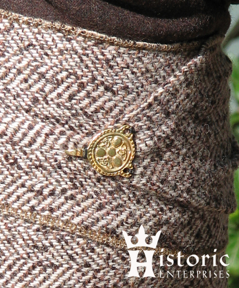 Реконструкция: Шерстяные ленты, упомянутые выше, были сотканы в качестве целой ткани, то есть. они имеют монолитные кромки с обеих сторон. Так как ткань такого узкого формата не является легкодоступной, 4 измерительная полоски  были вырезаны по ширине из подходящей синей саржевой в ёлочку полосы, и окантованы петельной строчкой (необработанные края шелковой полосы из погребения C10th в Маммене (Дания), были окантованы стежками с петлями: Østergård 1991). Бронзовые крючки реконструированы по одной находки 9-10 века, из мета известного как "Рюриково Городище" близ Новгорода, Россия (Носов 1987). Этот крюк был почти идентичен паре из могилы Bj905 в Бирке.