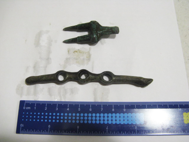 Недоливок был рядом с формами. Псалий (деталь лошадиной упряжи) не является литейной принадлежностью.