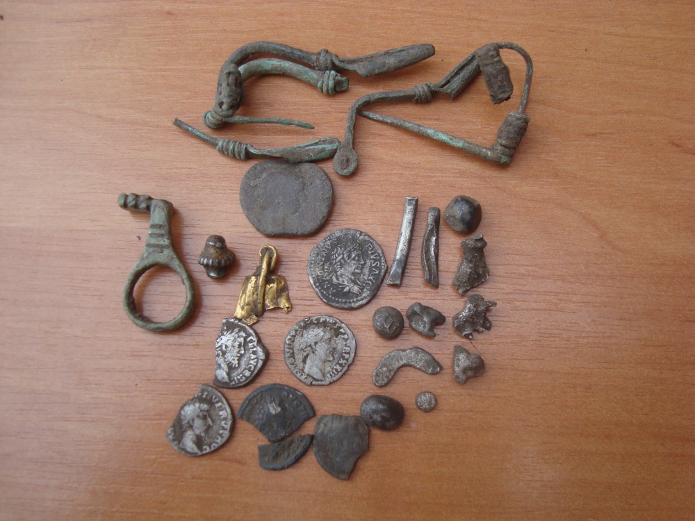 Находки древнеримских монет, латенских и древне средне и поздне римских римких фибул ременных пряжек. Приалекает внимание крупный солярный амулет в форме «кельтский крест», гальштатская фибула-сюльгама без иглы. Еще есть древнеримский ключ и большое количество серебряных монет. Среди нахолок есть и обломок золотого кулона с камнем. Есть и Двулопастной бронзовый наконечник стрелы овальной формы жала с шипом на втулке, относящийся к первой хронологической группе по К. Смирнову (конец VII-первая половина VI века до н.э.). Кладоискательство как хобби и способ заработка становится всё более популярным. Все эти предметы, найденные в мае 2016 были представлены искателем FedorOFF на форуме кладоискателей Виолити