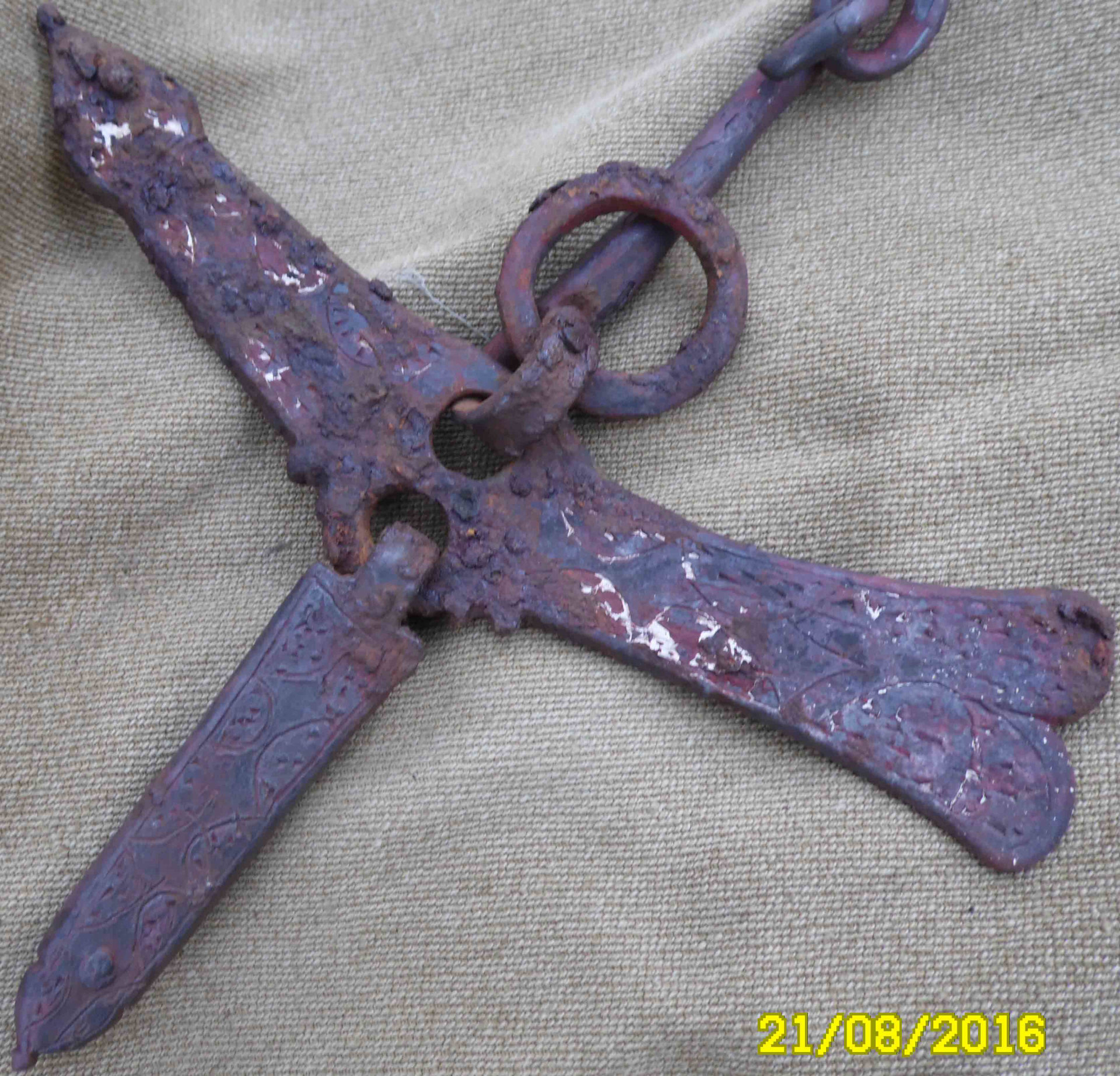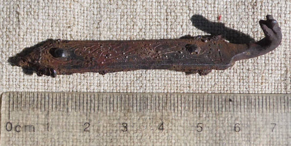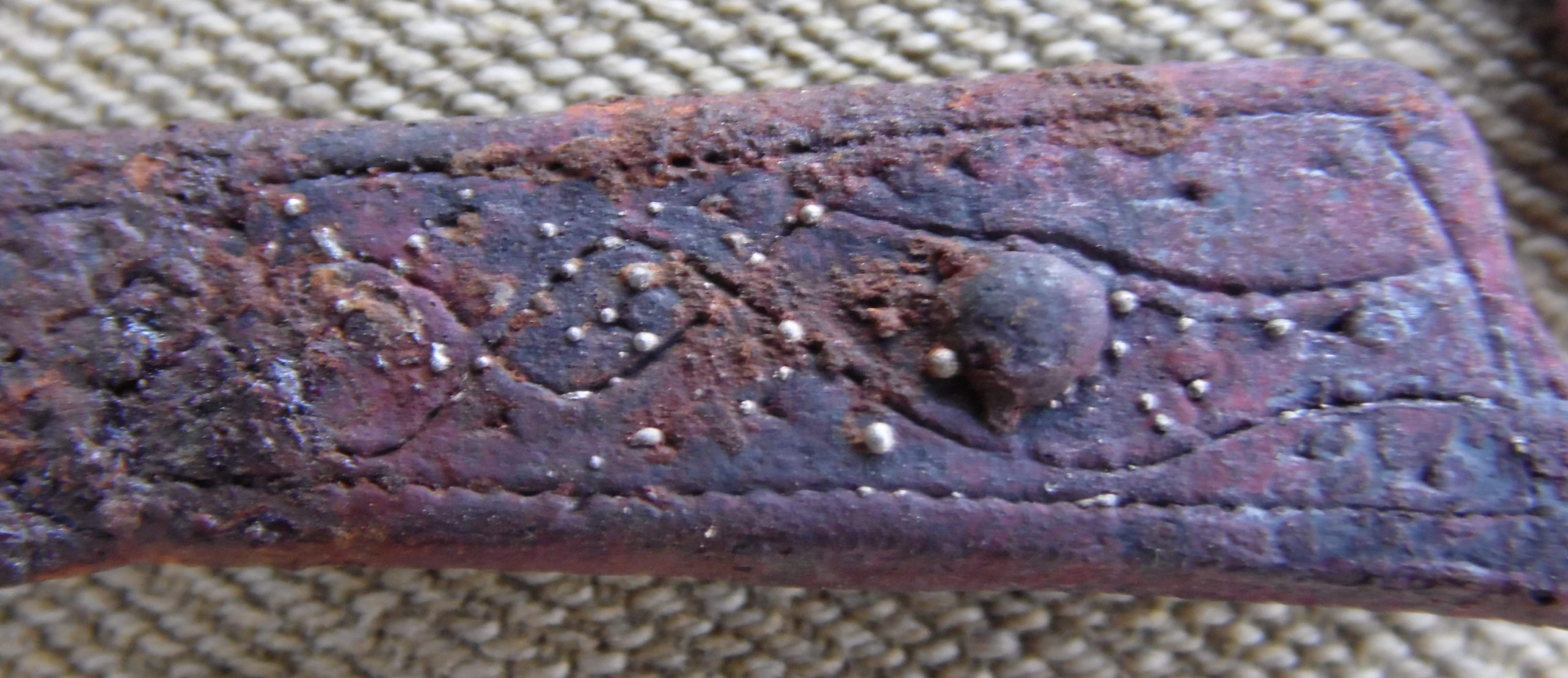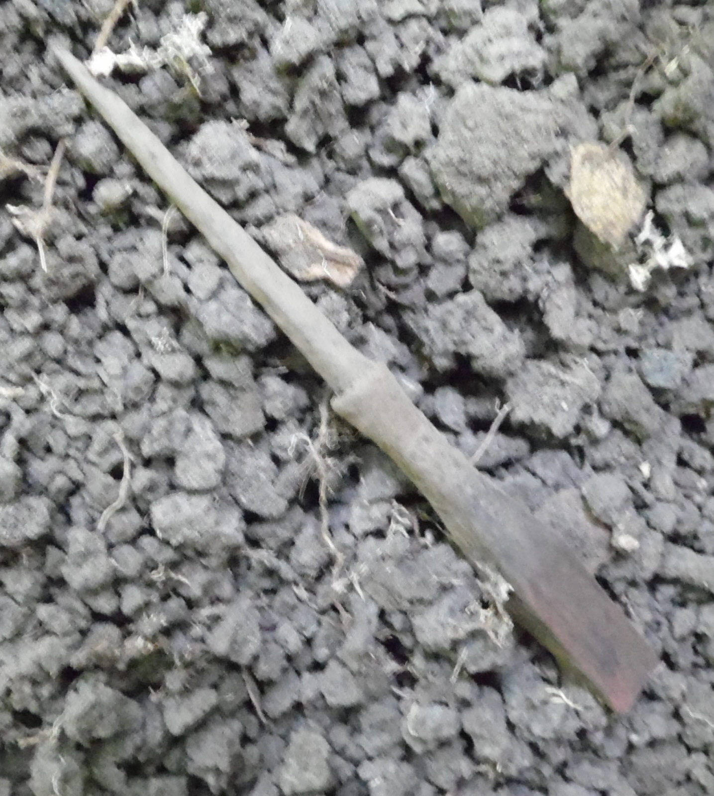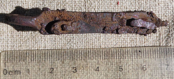 Но это еще не все. 21 августа поехал обратно в то место раскопал его глубже и шире, вылезло еще несколько находок. С первых порадовал наконечник, совсем без следов ржавчины.
