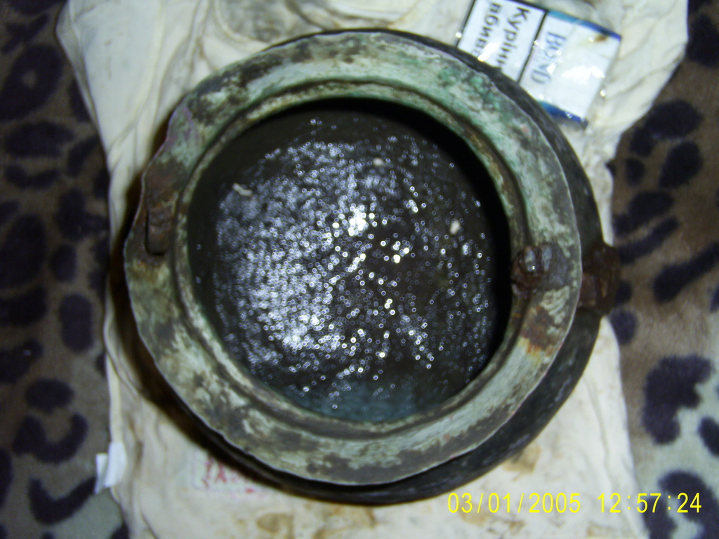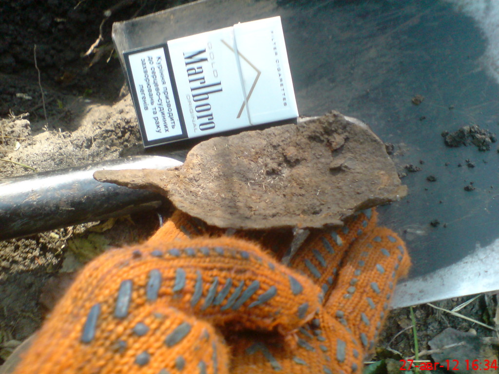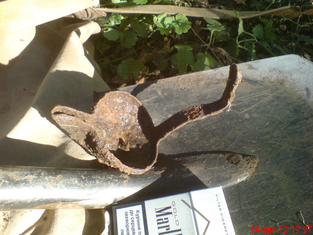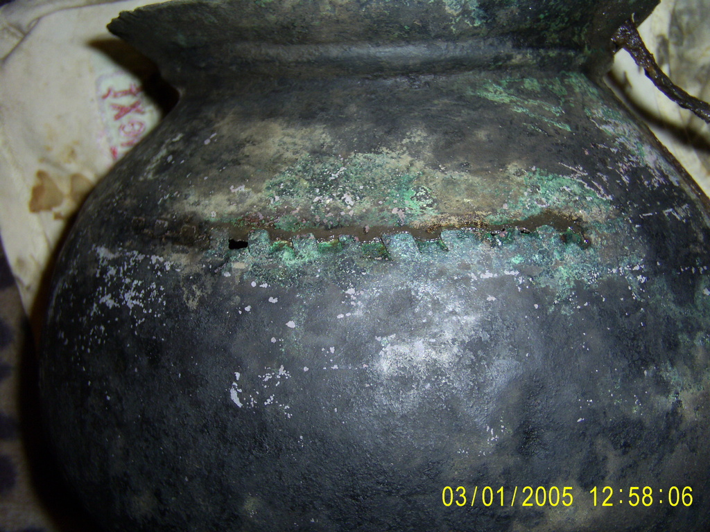 Котел с такой сопуткой, некоторые вещи найдены прямо в нем. Обувная подковка найдена отдельно, и бесспорно, пренадлежит к более познему времени. Дужка у котла, вероятнее всего, хазарская.
