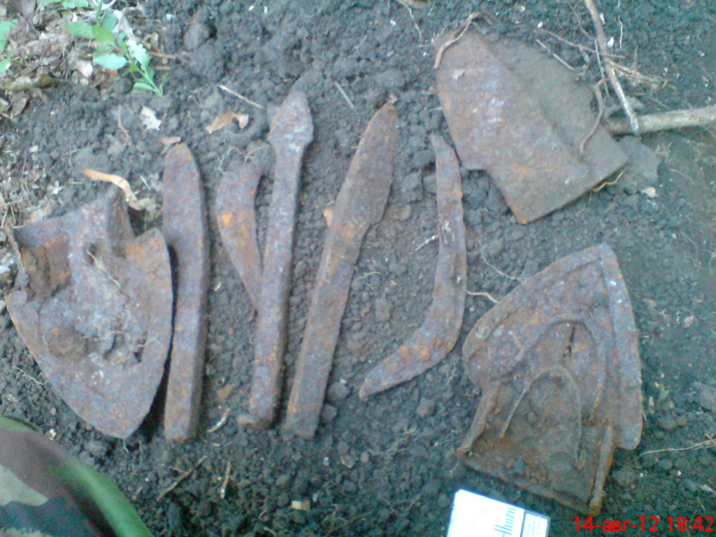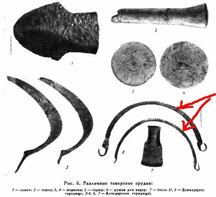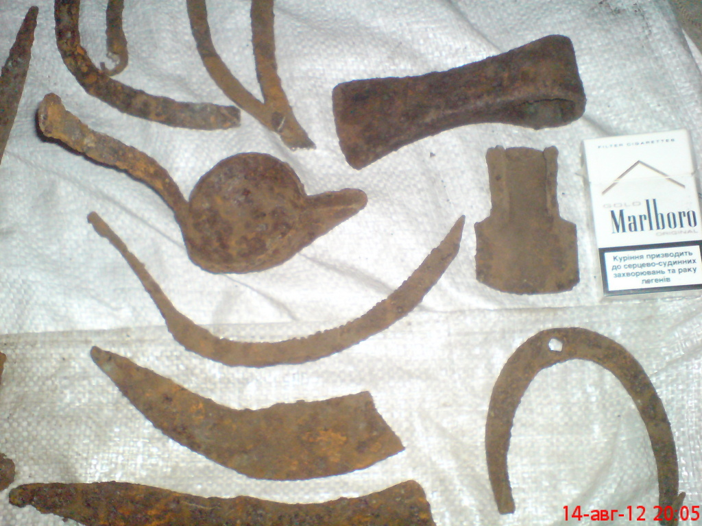 Cельскохозяйственная утварь времен Киевской Руси, стрелками указал – ручки ведер, подобные у нас встречаются по тиверцам. Вот такие находки с тиверских городищ в Молдавии – идентичные вашим; шпоры и тесло.
